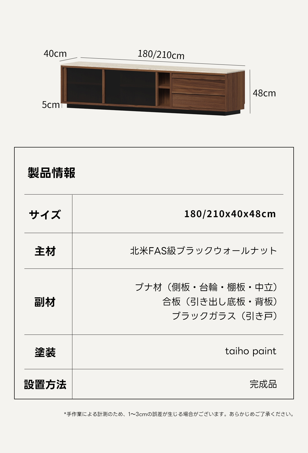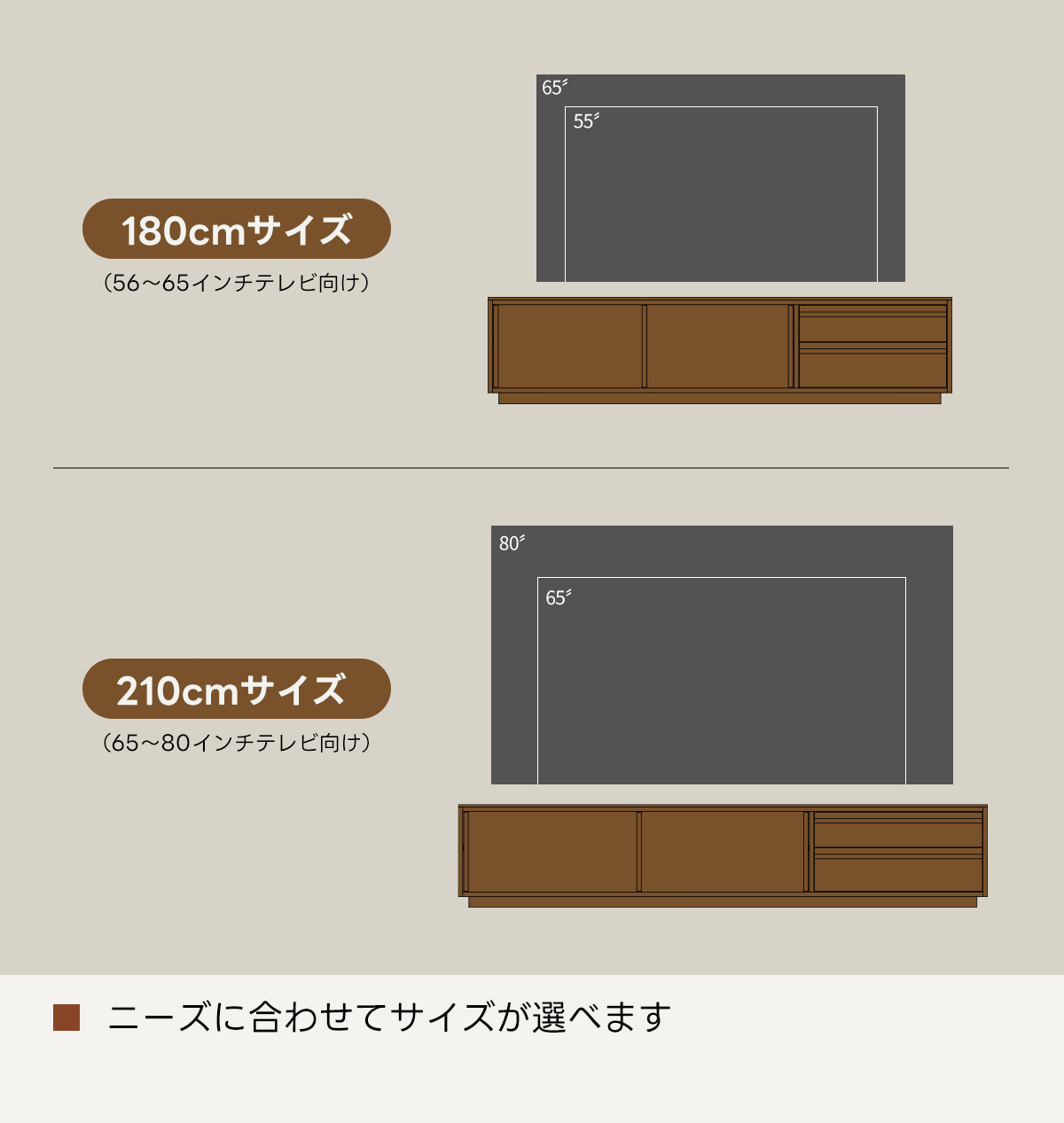- 【多様な適用シーン】:このテレビボードは、カップルやファミリー、一人暮らしの方にも最適です。リビングをスタイリッシュに彩るナチュラルなベージュと木の色合いが、どんなインテリアにも調和します。180cmと210cmの2サイズ展開で、56〜80インチのテレビに対応し、さまざまなリビングスペースにフィットします。