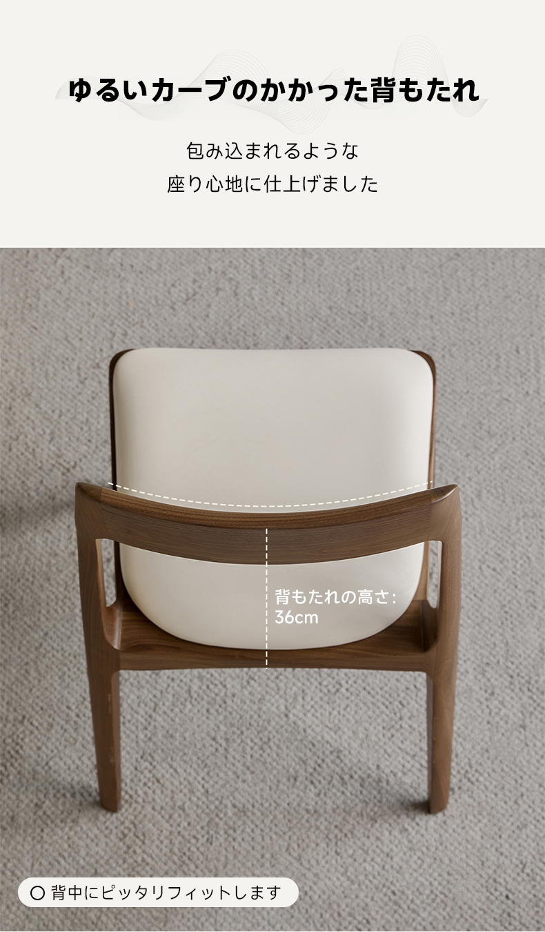 - 【ユーザーに優しい設計】ゆるいカーブの背もたれは体を包み込むようなデザインで、長時間座っても疲れにくい設計。座面のクッションはエコレザーを使用し、耐久性と快適さを提供します。