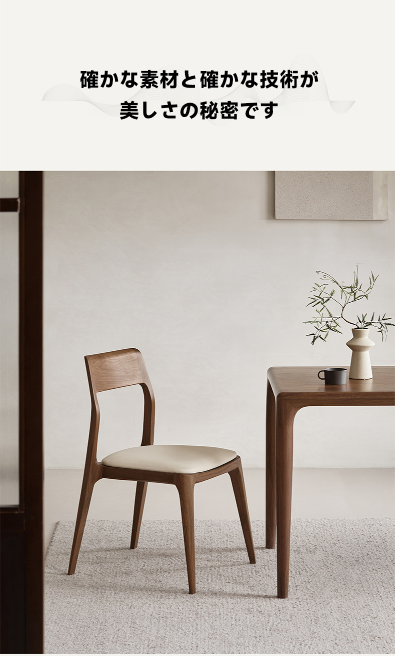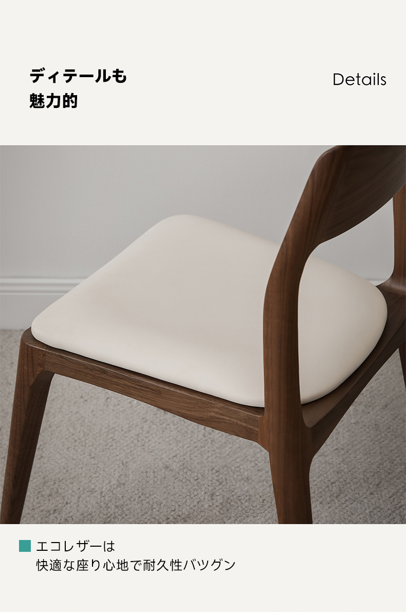 - 【優れた素材と快適な座り心地】ウォールナット材を使用した高級感あふれるダイニングチェア。FAS級の素材で色ムラや節が少なく、見た目も美しい仕上がり。エコレザーのクッションは長時間座っても疲れにくく、快適な座り心地を提供します。