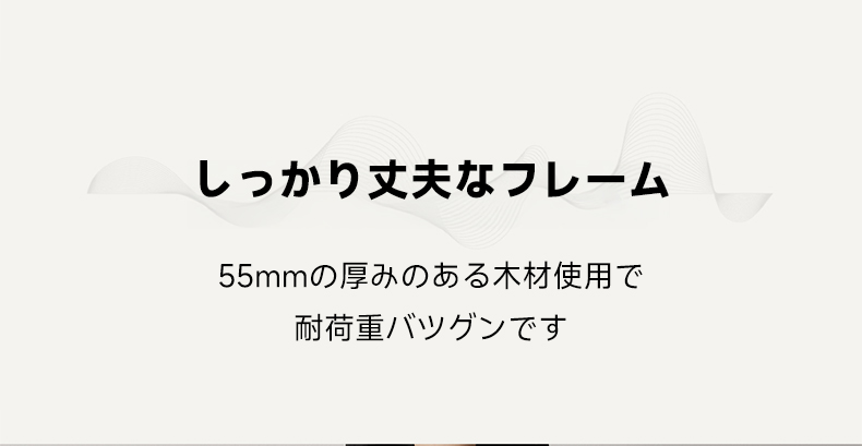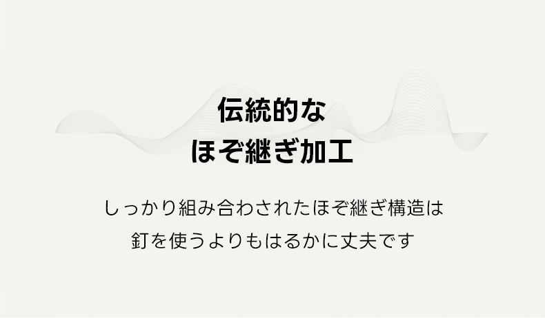 - 【耐久性と安定感を兼ね備えた構造】55mmの厚みのある木材を使用したフレームは耐荷重に優れ、八の字構造の脚は安定感を増しています。伝統的なほぞ継ぎ加工により、ネジを使わずにしっかりと組み立てられています。