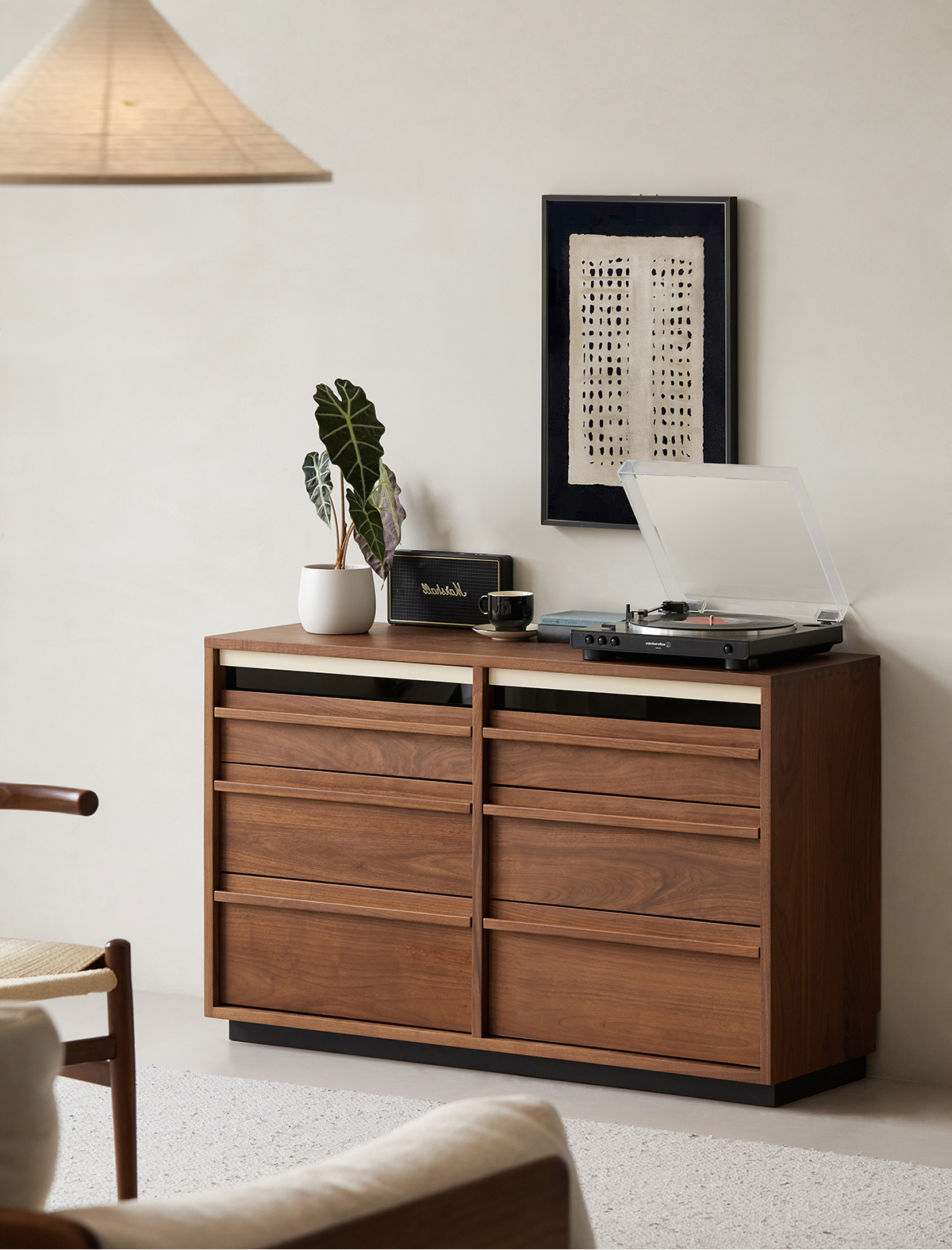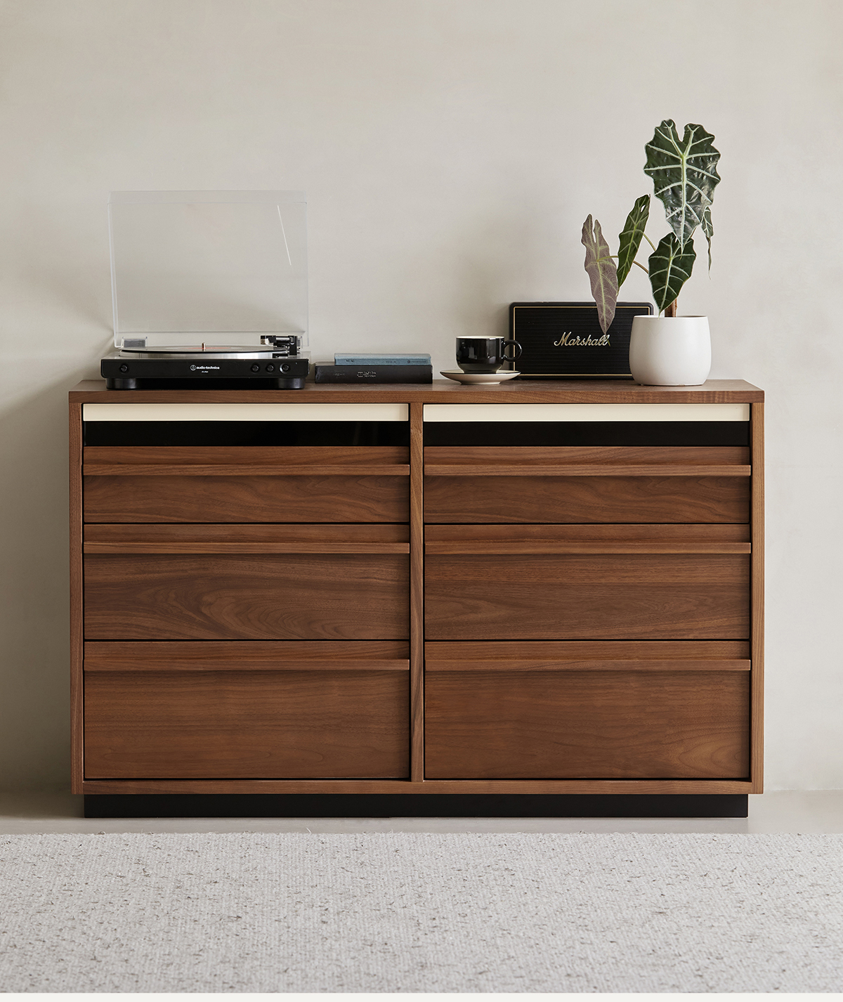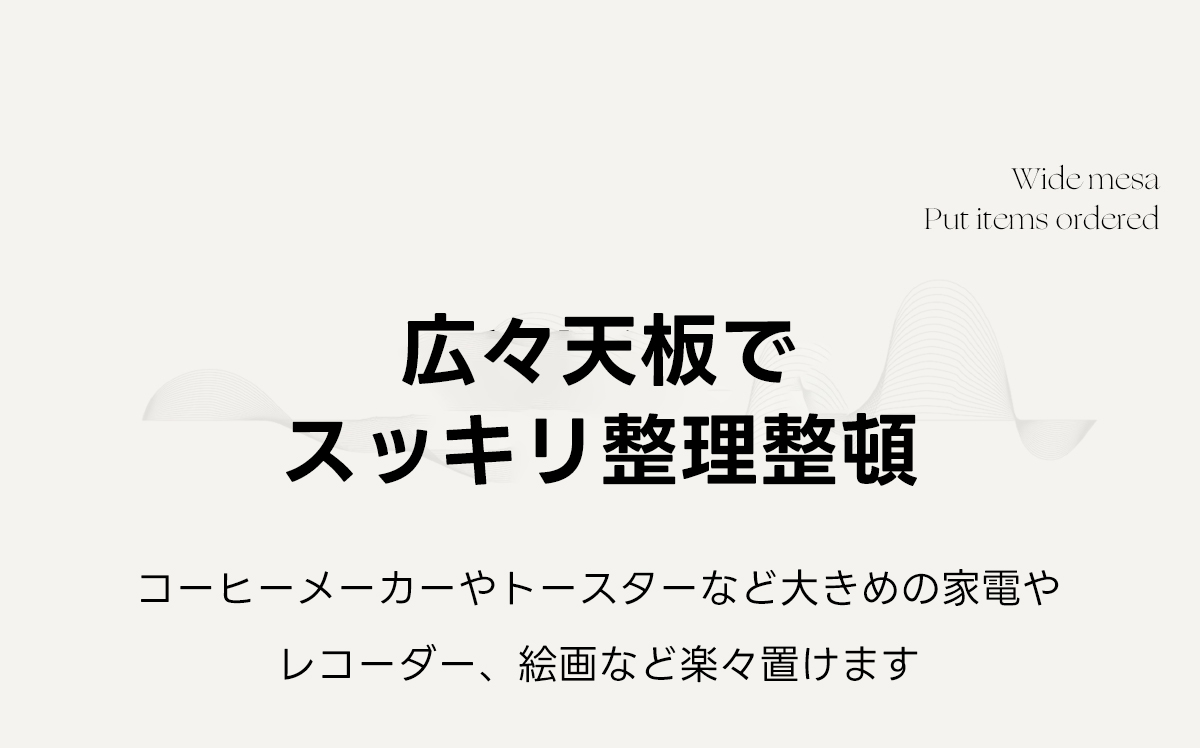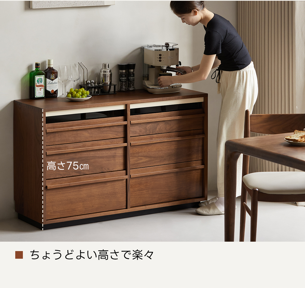 - 【使いやすさと機能性】:一体型幅広引手で開閉がスムーズ。広々とした天板は、コーヒーメーカーやレコードプレーヤーなどの家電を楽々置けます。