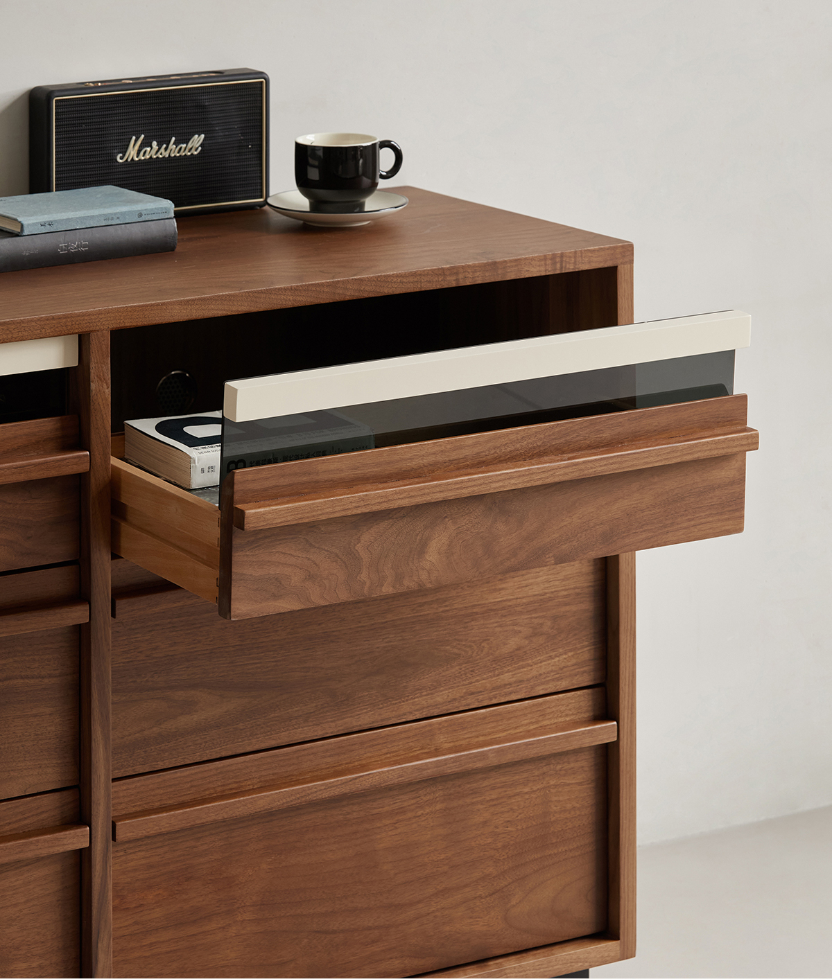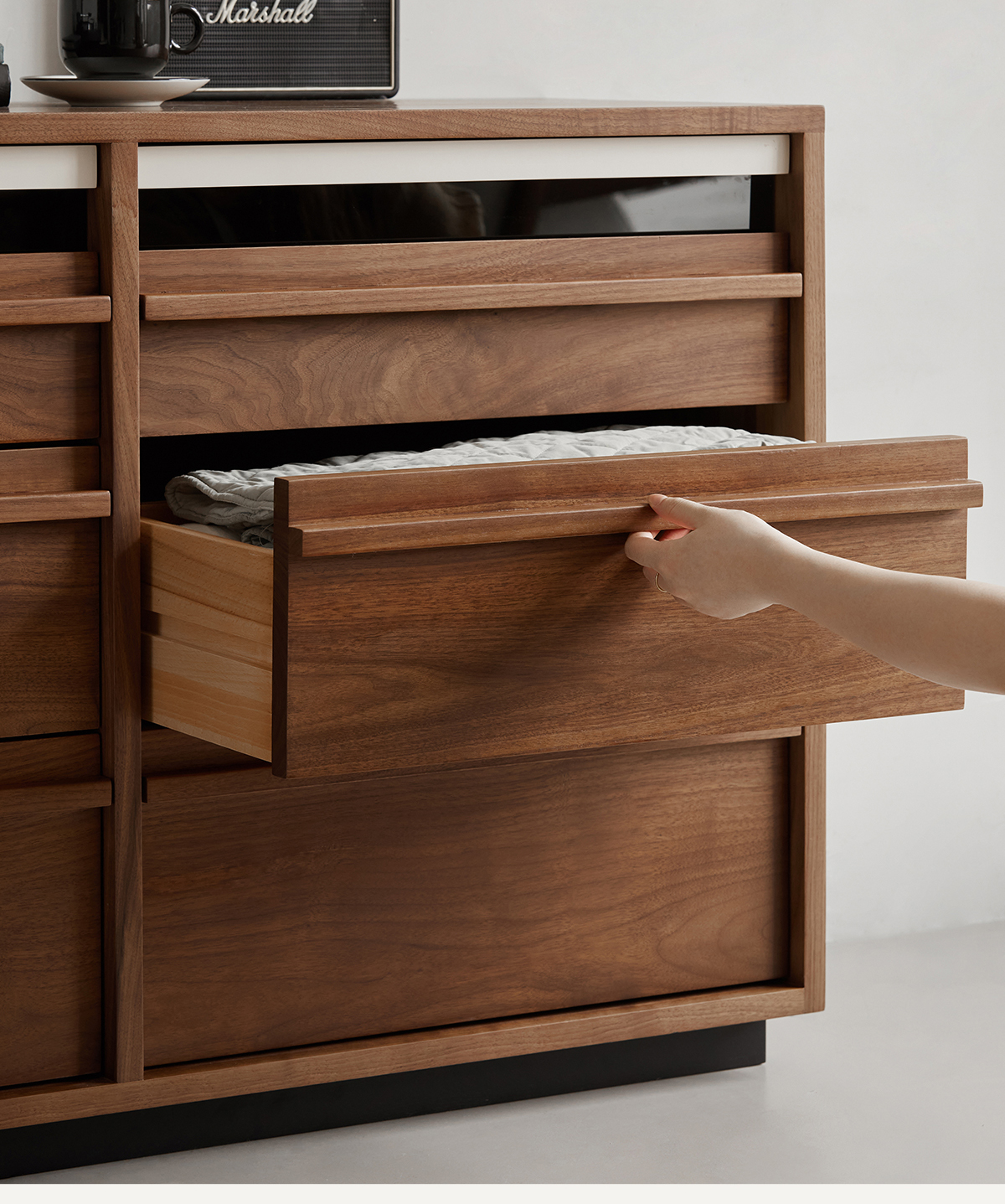 - 【高品質な素材とデザイン】:北米FAS級ブラックウォールナット材を使用し、耐久性と美しさを兼ね備えたキャビネットです。細やかな木目と深みのある色合いが、どんなインテリアにも調和します。