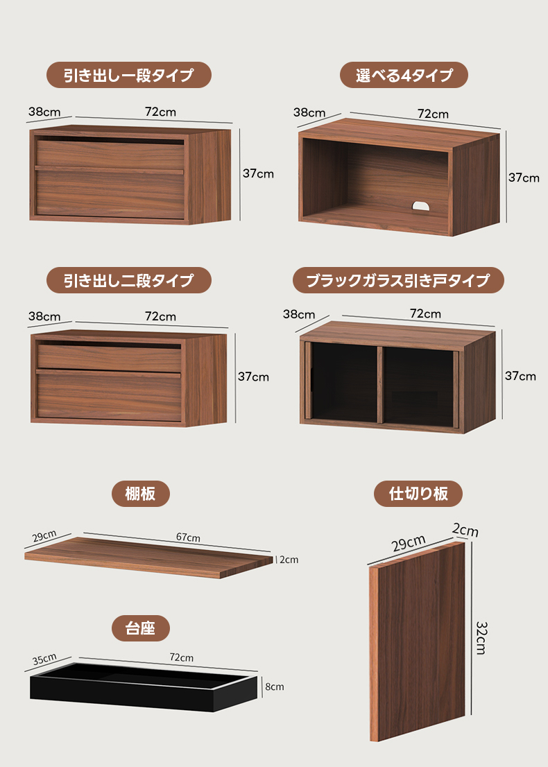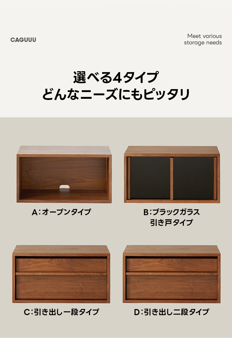 Woody Prime Walnut ウォールナット材 ユニット式木製キャビネット