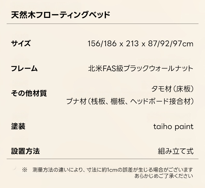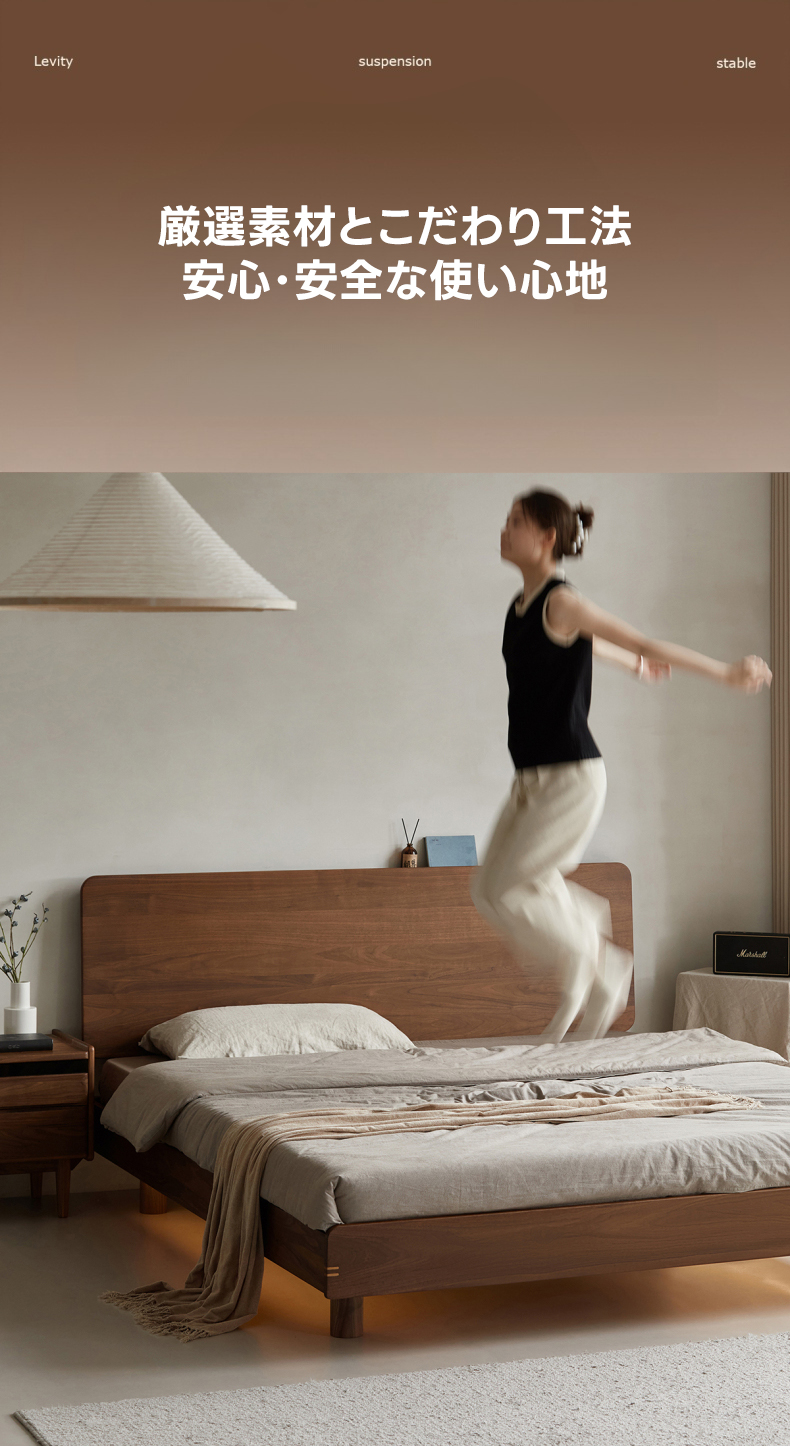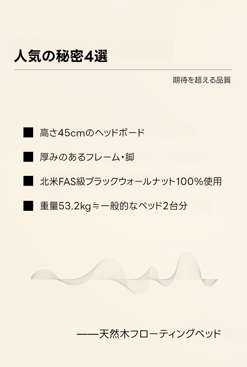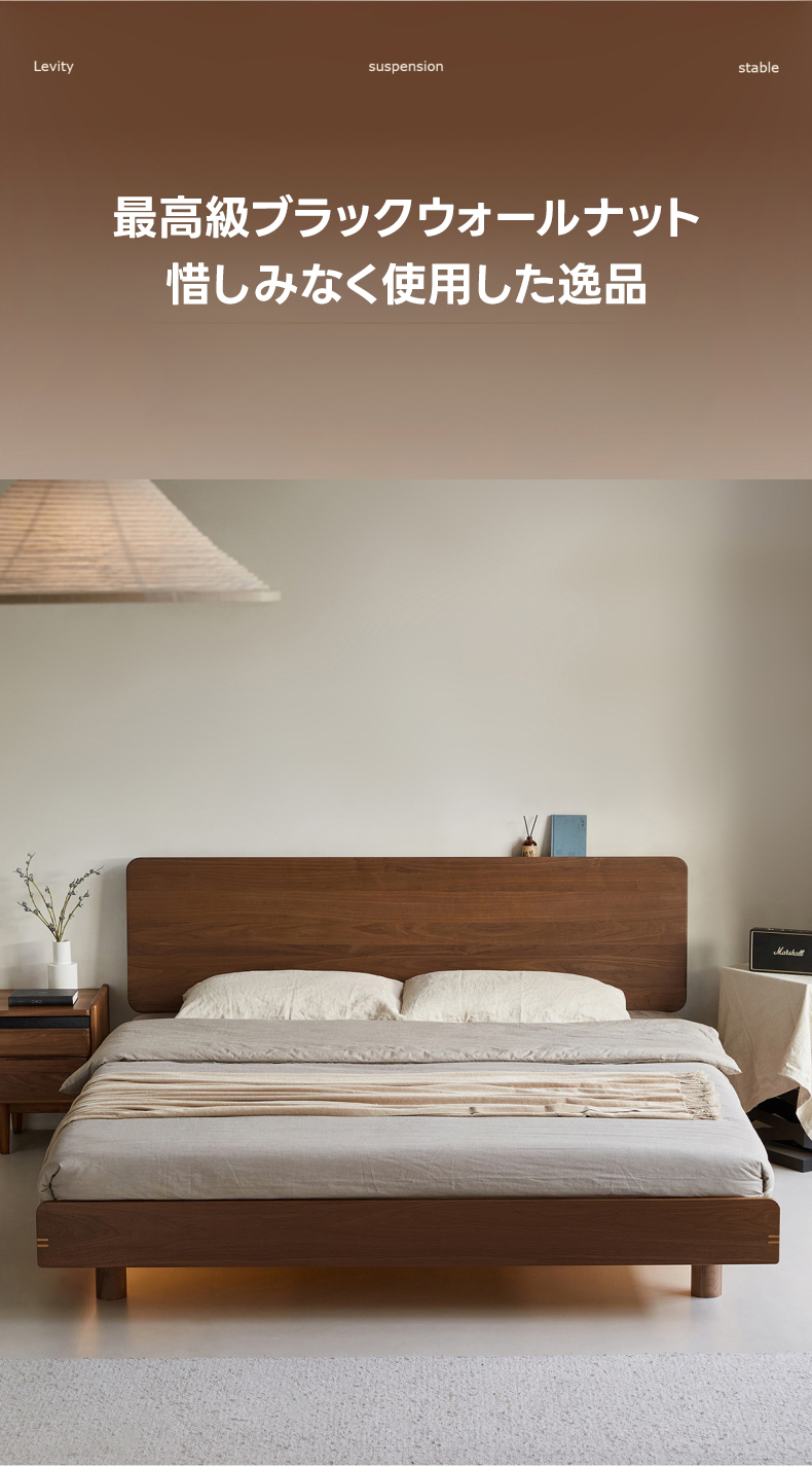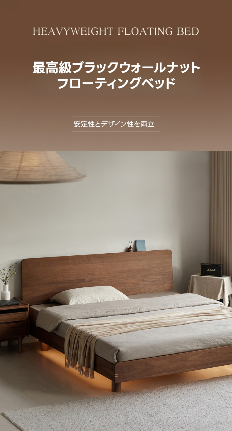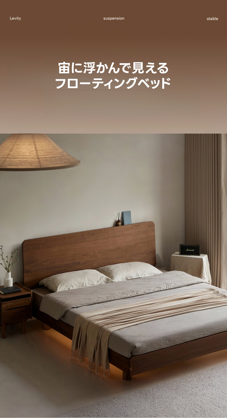- 【高級素材使用のフローティングベッド】ウォールナット材を100%使用し、優れた耐久性と美しさを実現。北米FAS級ブラックウォールナットの美しい木目が特徴で、どんなインテリアにも調和します。