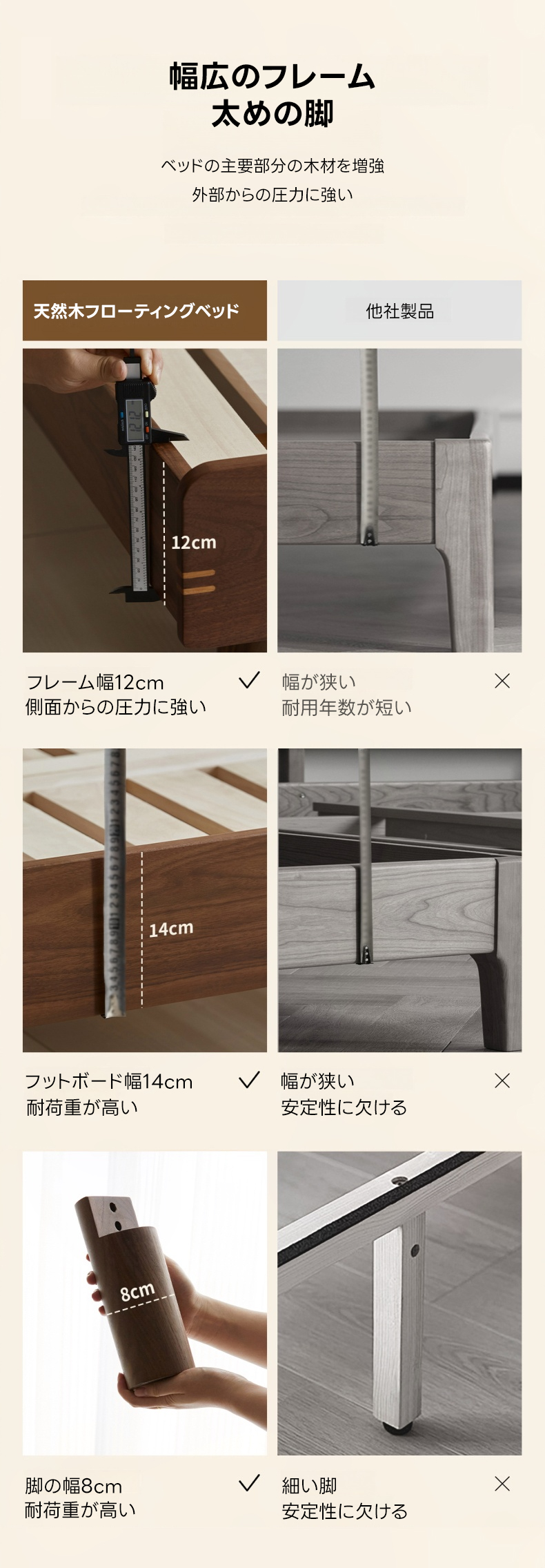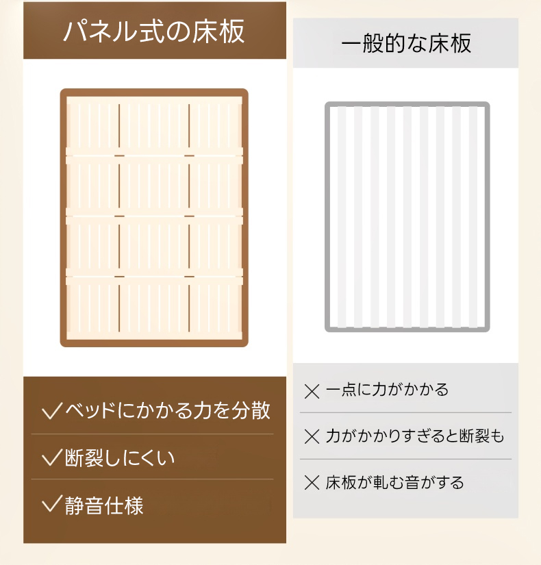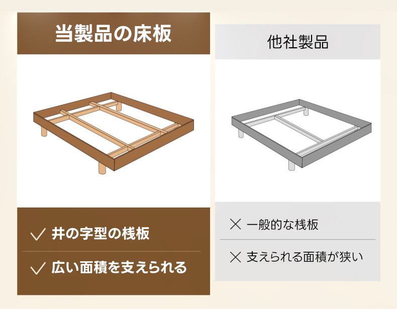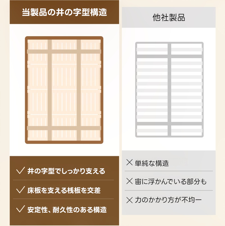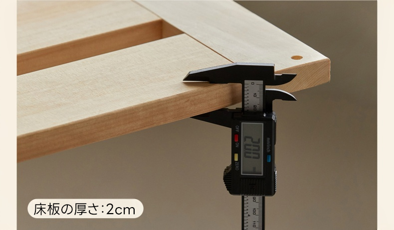 - 【環境に優しい仕上がり】健康・環境に優しいニスを使用し、化学物質を含まない安心・安全な仕上がり。通気性を保つ3cmの隙間があり、マットレスの型崩れを防ぎます。