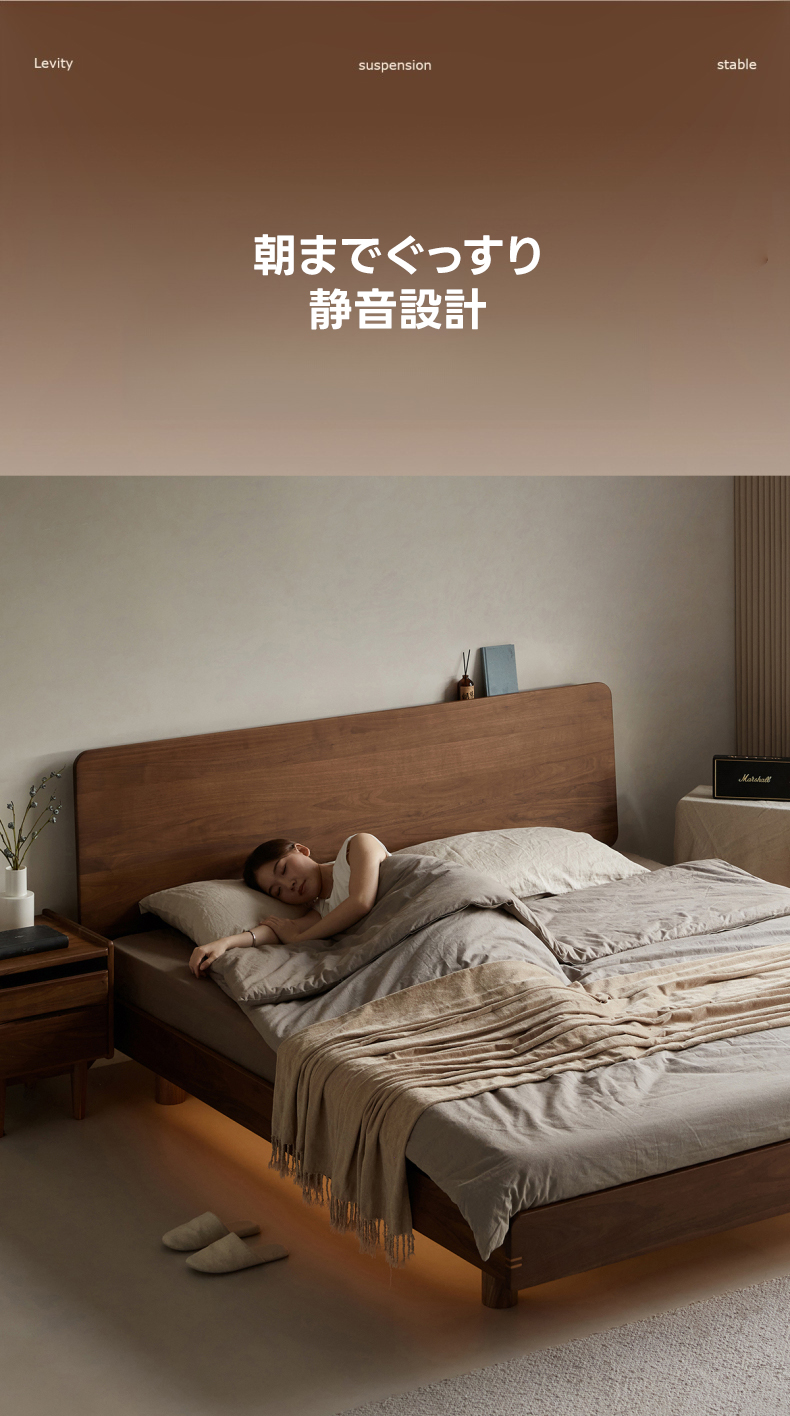 Woody Prime Walnut ウォールナット材 天然木フローティングベッド