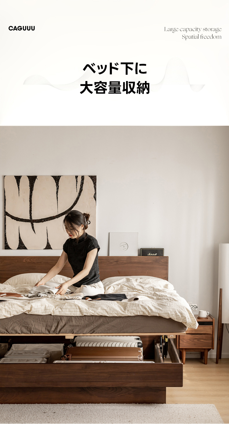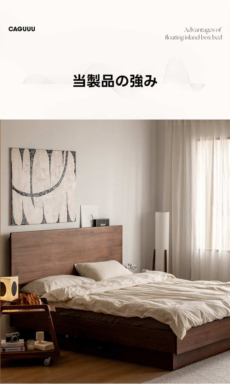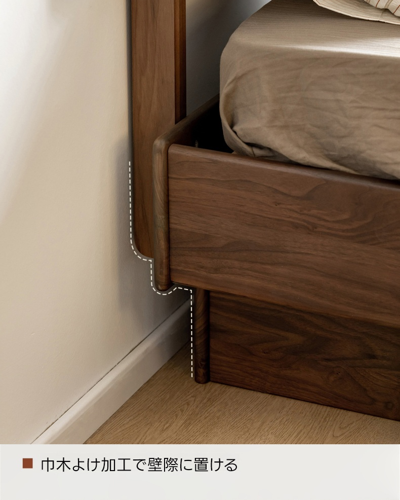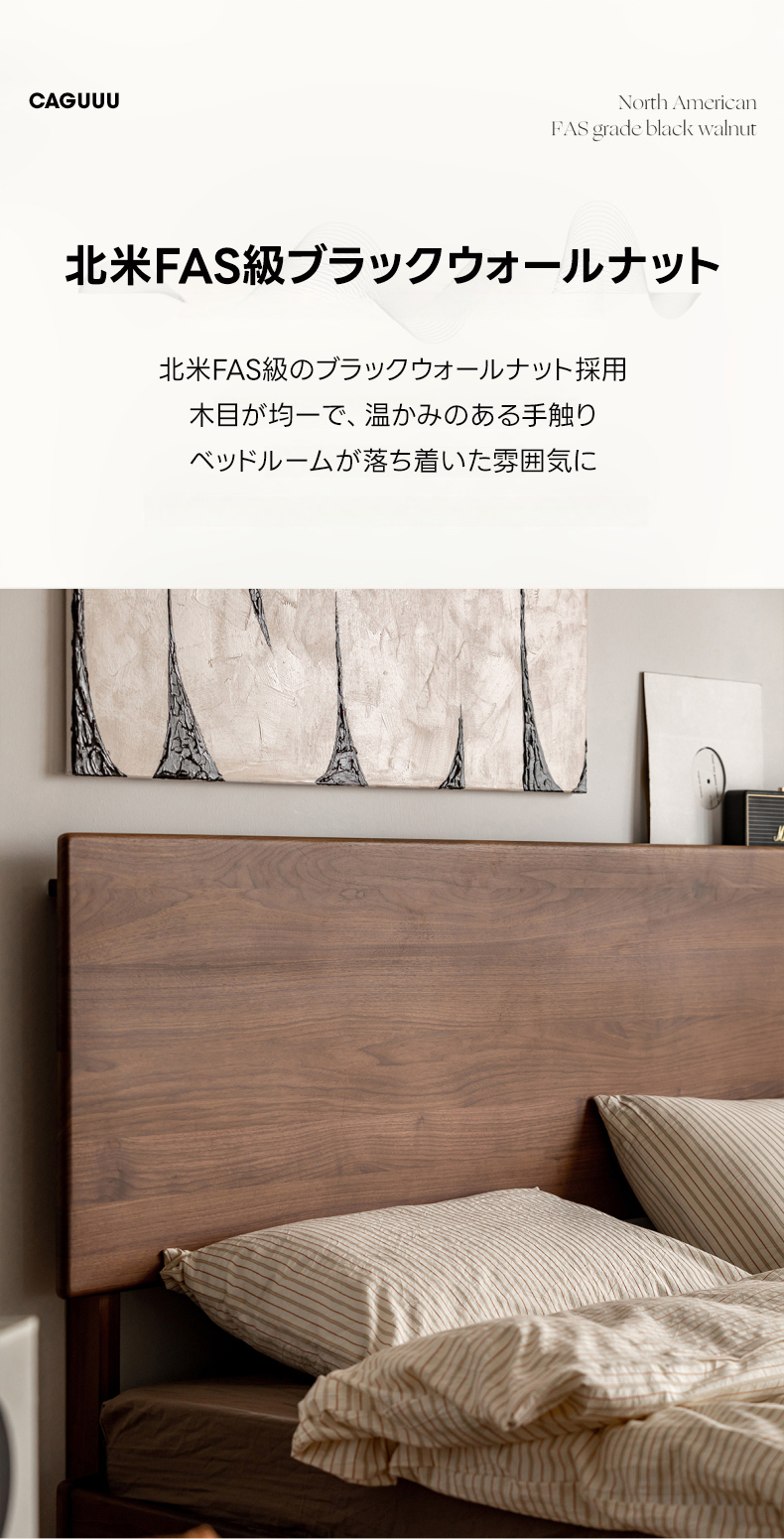 Woody Prime Walnut ウォールナット材 大容量収納付きボックスベッド