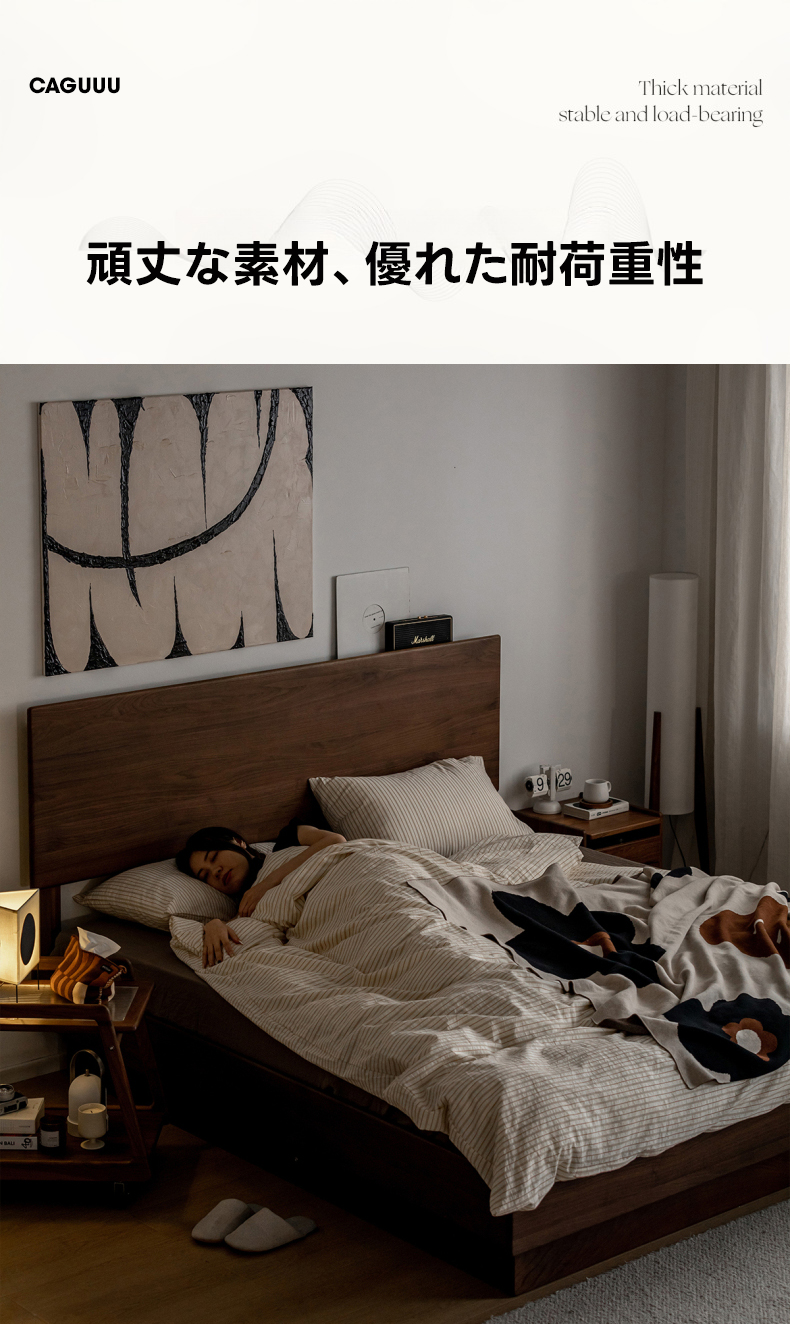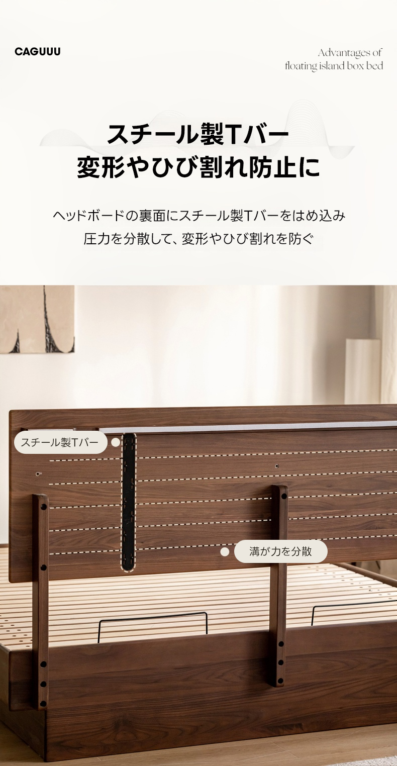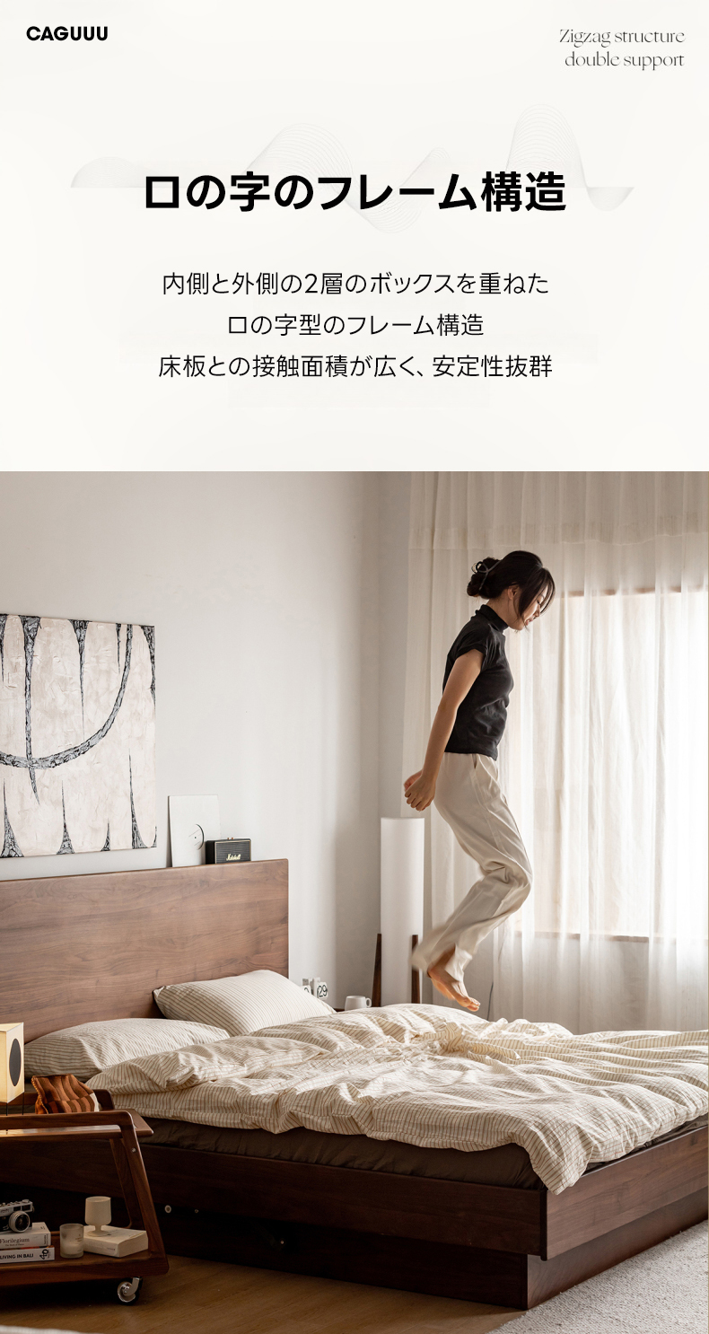 Woody Prime Walnut ウォールナット材 大容量収納付きボックスベッド