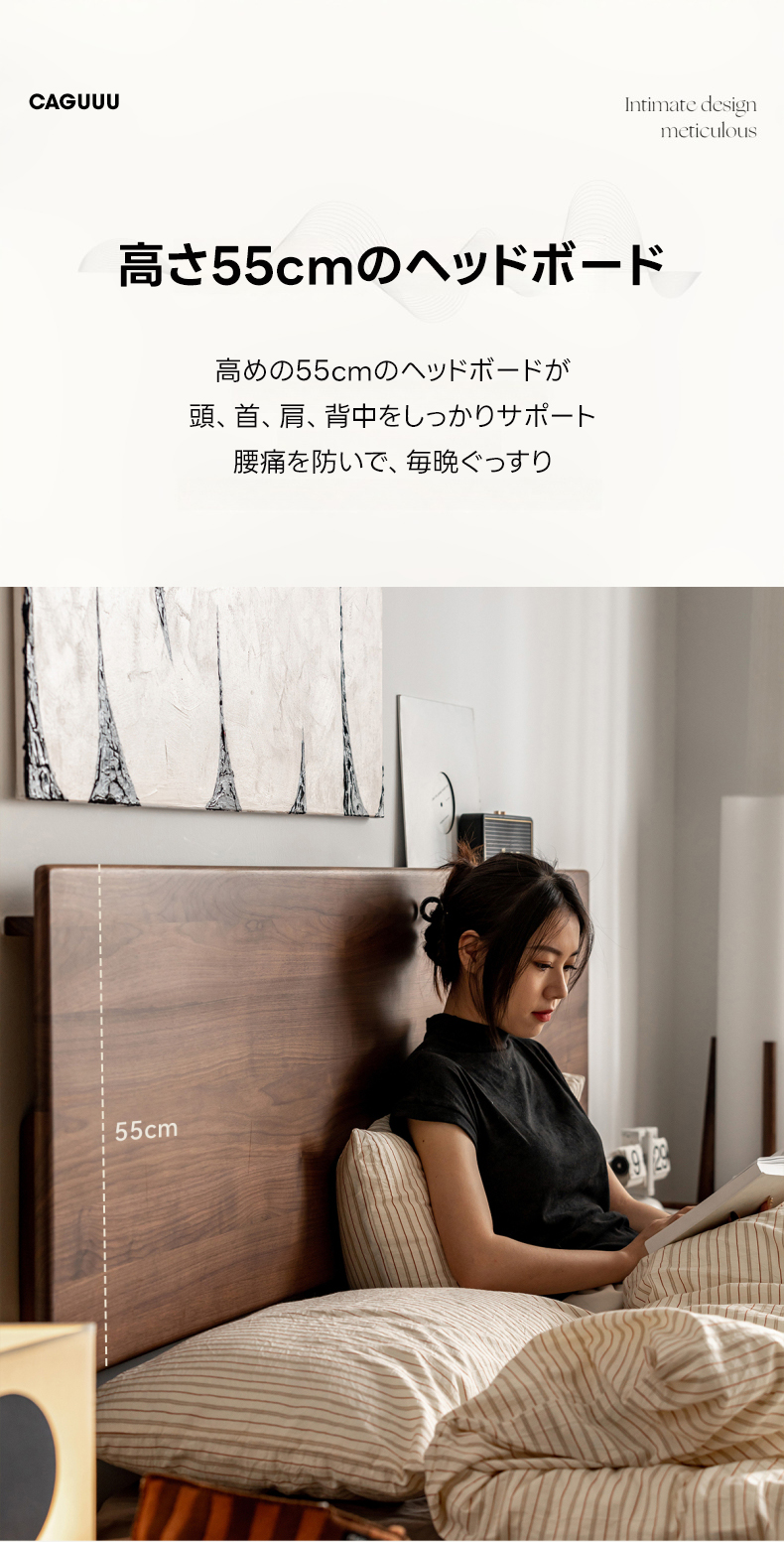 - 【快適な使用体験】高さ55cmのヘッドボードが頭や首、肩をしっかりサポートし、腰痛を防ぎます。音低減シールが設置されており、夜間の騒音を抑え、快適な睡眠をサポートします。