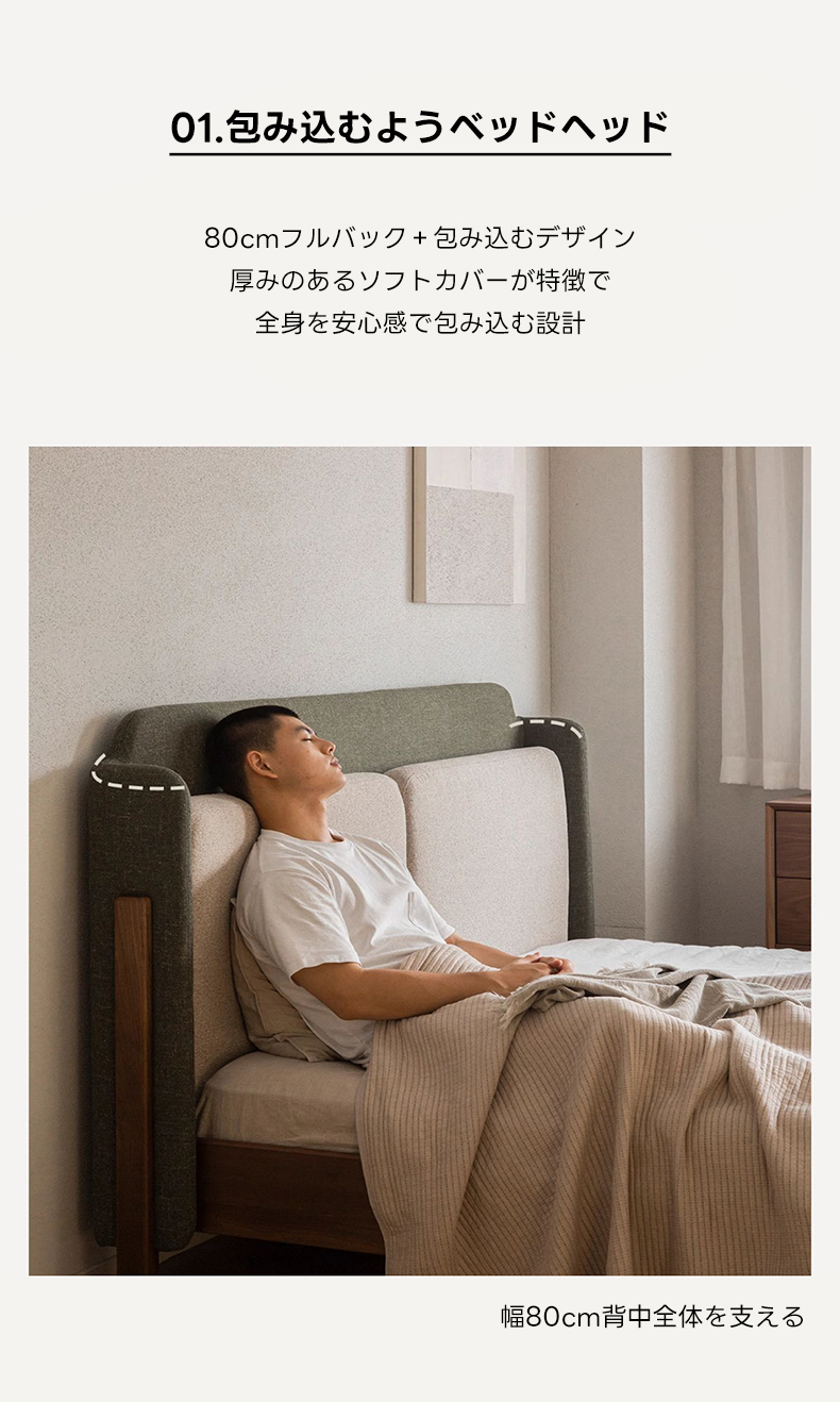 • 【優れたデザインと快適性】80cmのフルバックデザインのベッドヘッドと厚みのあるソフトカバーが、全身を包み込むような安心感を提供します。高密度ウレタンとシルクコットンの二重クッションが背中を優しく支え、快適なフィット感を実現します。