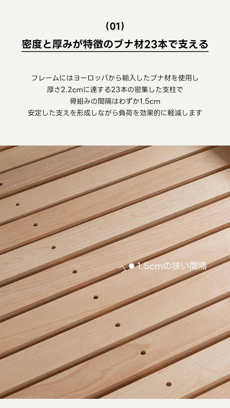 • 【安心のサポート】フレームにはヨーロッパから輸入したブナ材を使用し、23本の支柱でしっかりと支えられています。長く愛用できる耐久性と安定性を備えた設計で、安心してお使いいただけます。