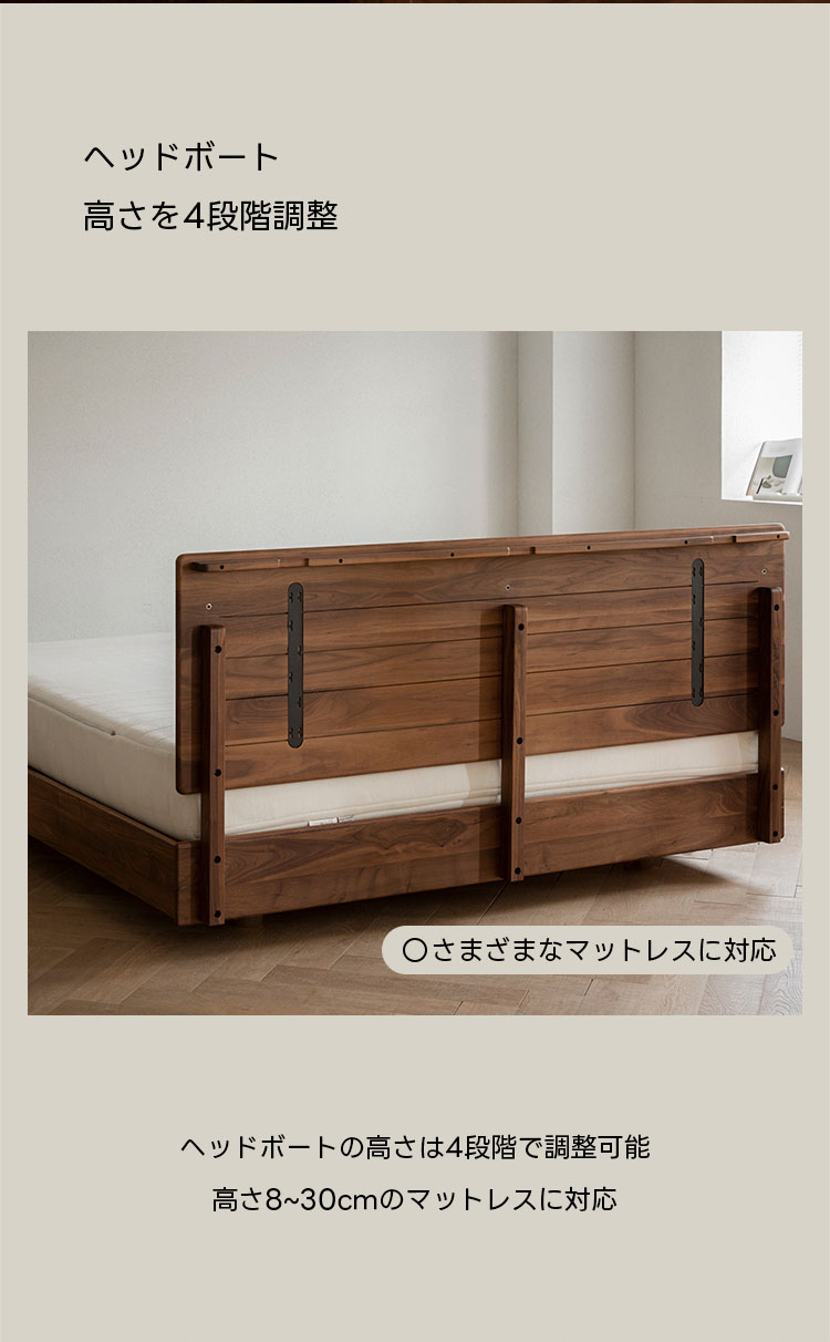 Woody Prime Walnut ウォールナット材 木製フローティングベッド