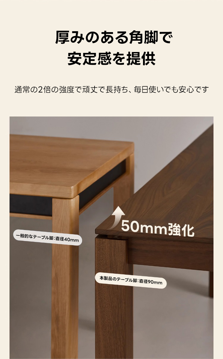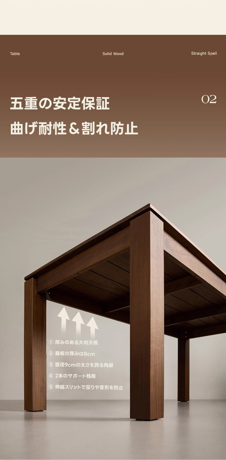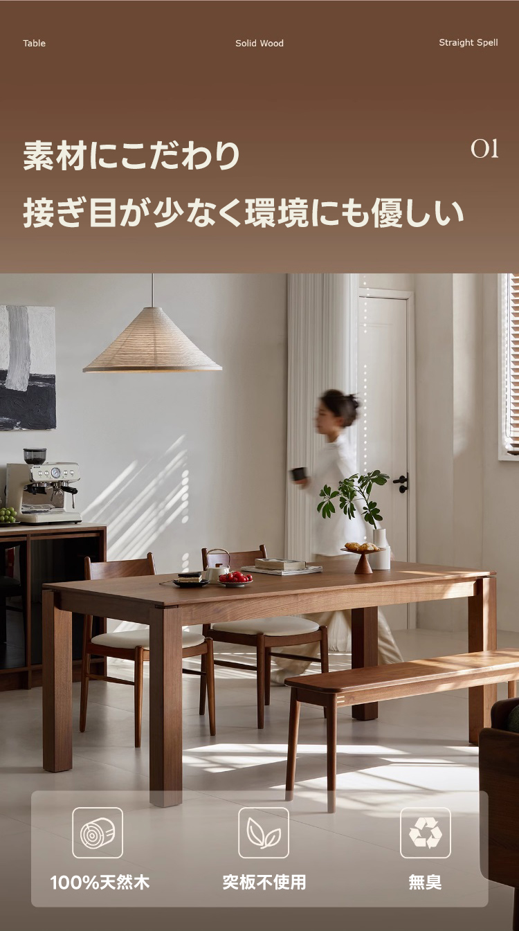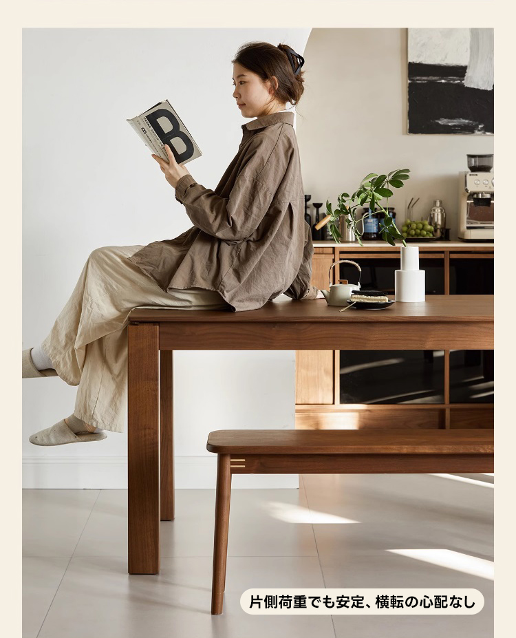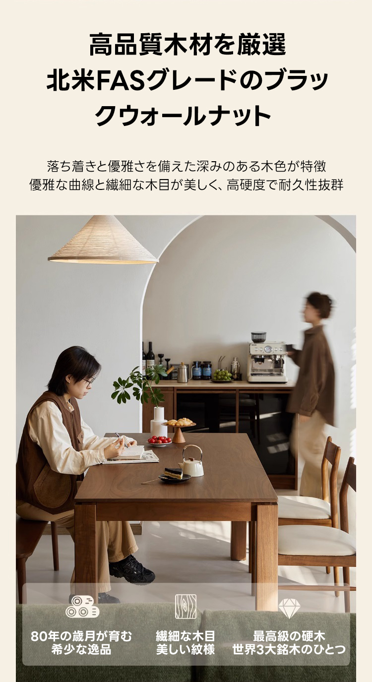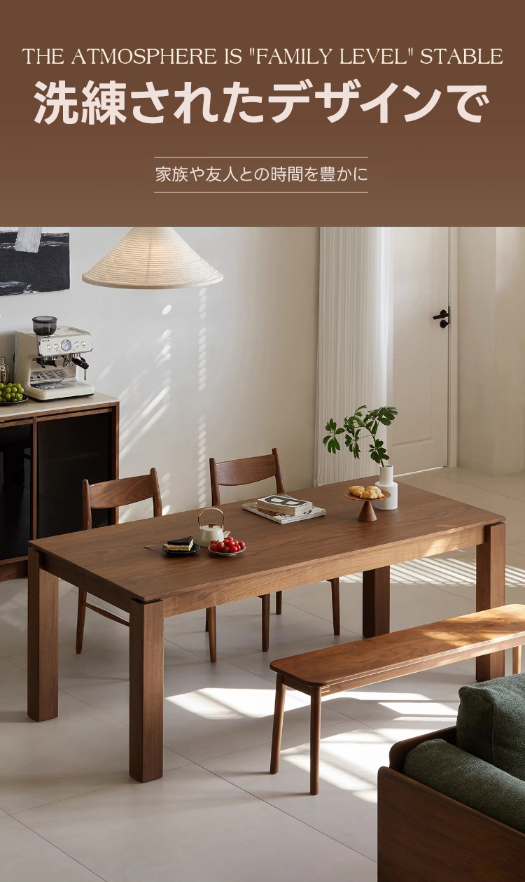 - 【高品質素材と頑丈な構造】:このダイニングテーブルは、北米産FASグレードのブラックウォールナットを使用し、厚みのある天板と太い角脚で安定感を提供します。高級感と耐久性を兼ね備えたデザインで、長く愛用できる一品です。