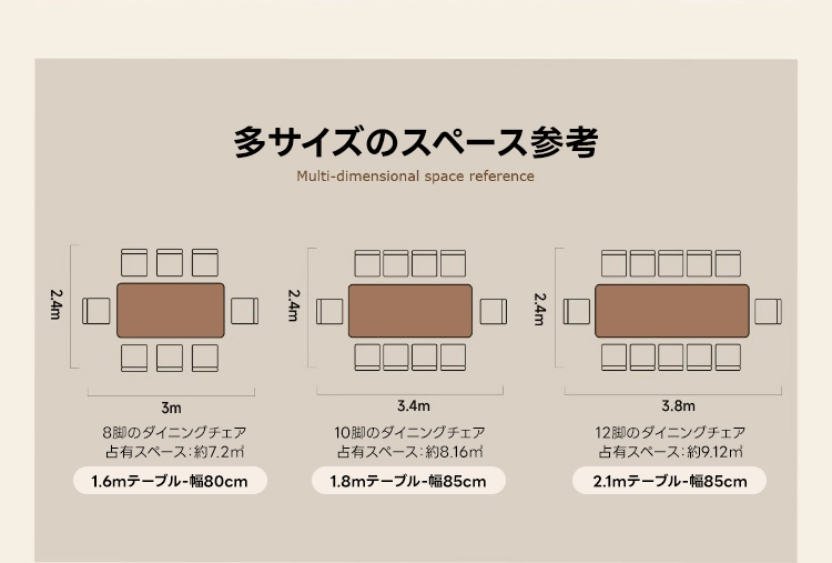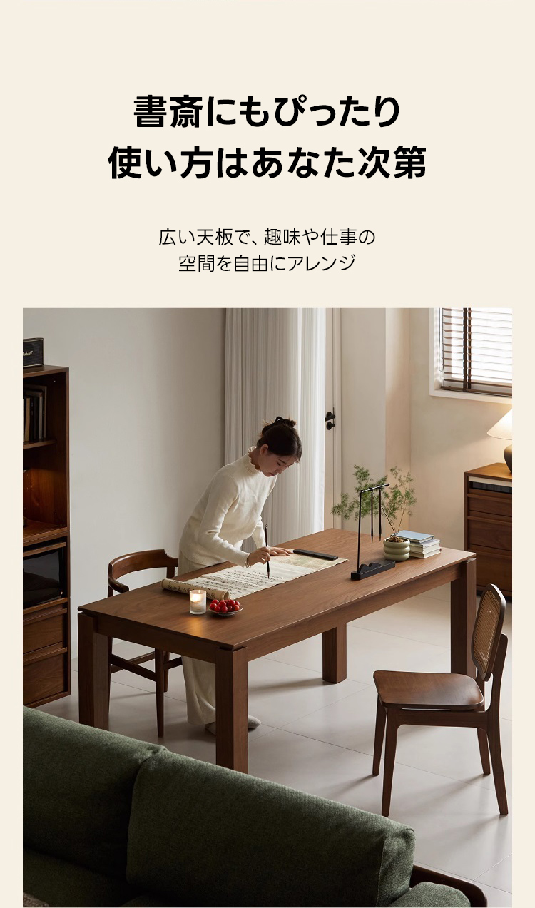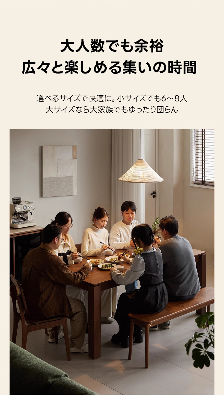 - 【多用途なデザイン】:広々とした天板は、ダイニングだけでなくワークデスクとしても利用可能です。選べるサイズで、6〜12人まで快適に使用でき、家族や友人との集まりに最適です。