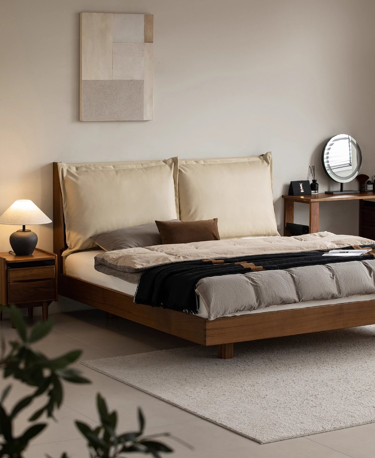 Woody Prime Walnut ウォールナット材 ハイバックファブリックベッド
