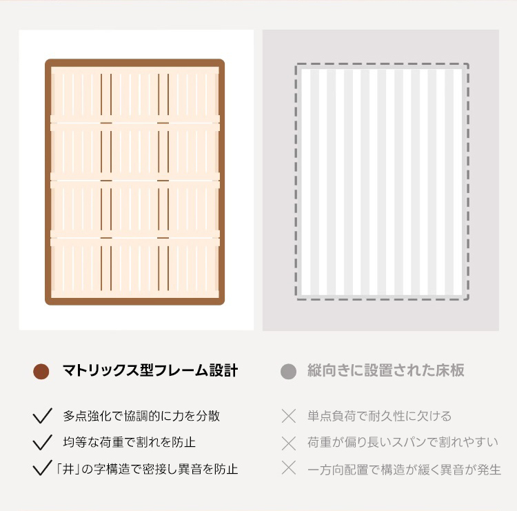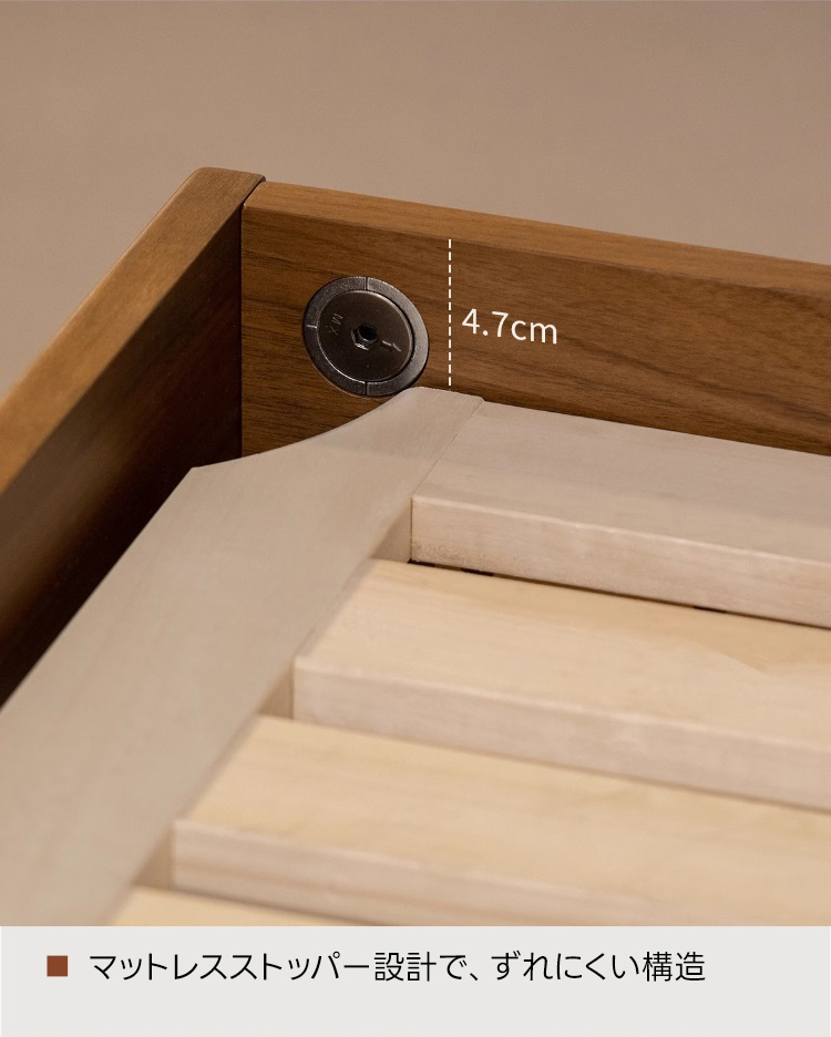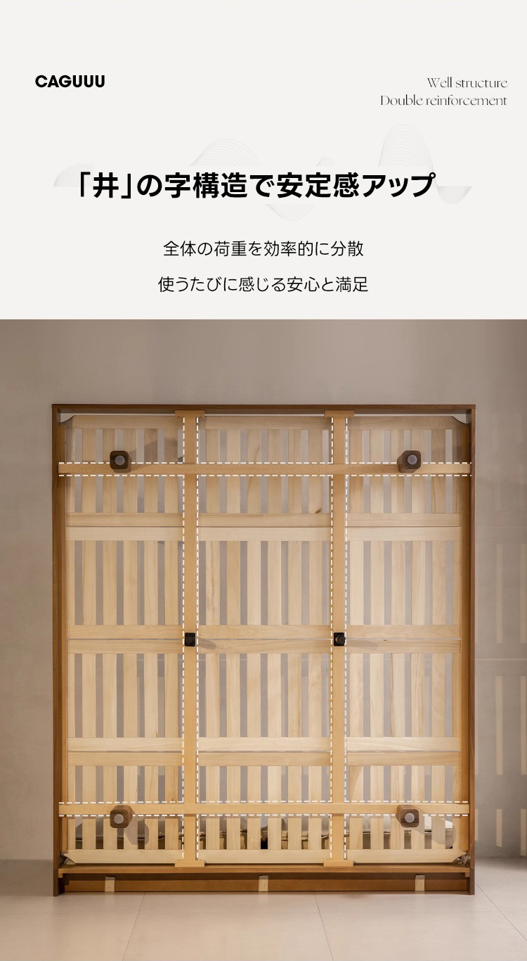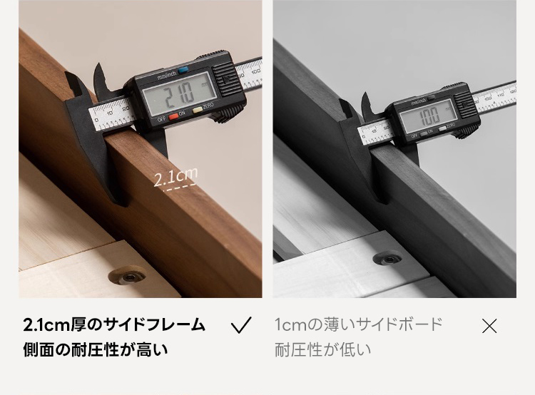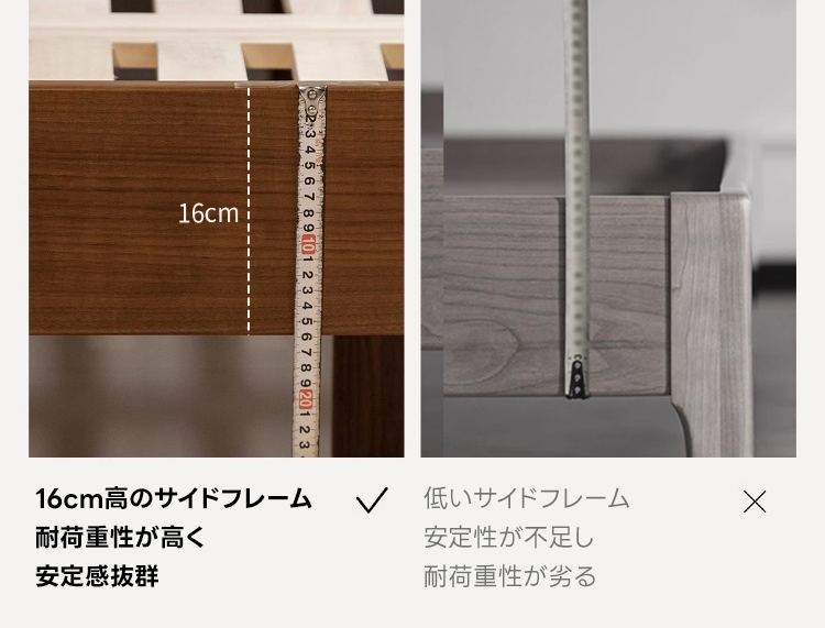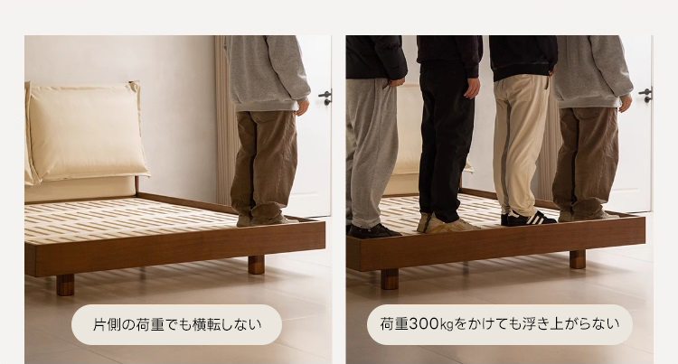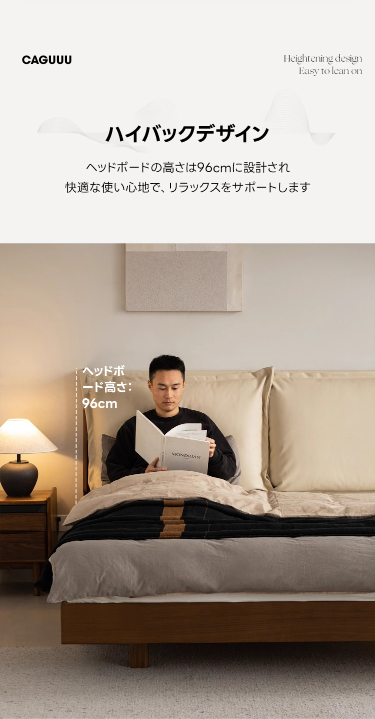 - 【厳選された素材と優れた構造】:フレームには北米産ブラックウォールナット材を使用し、耐久性と美しさを兼ね備えています。サイドフレームは2.1cmの厚みがあり、耐圧性が高く、安定感抜群です。6本の頑丈なベッド脚で、一般的な4本脚のベッドよりも安定性が向上しています。