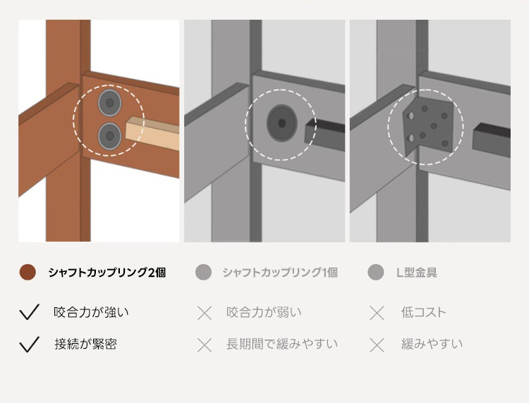 - 【安心の品質保証】:工業用グレードの頑丈なシャフトカップリングを採用し、長期間の使用でも安心です。耐荷重は520kgと非常に高く、安定感があります。購入後も安心してお使いいただける品質を提供します。