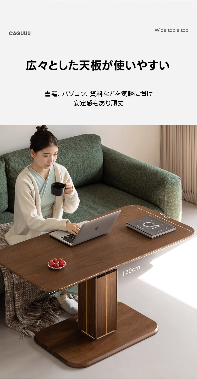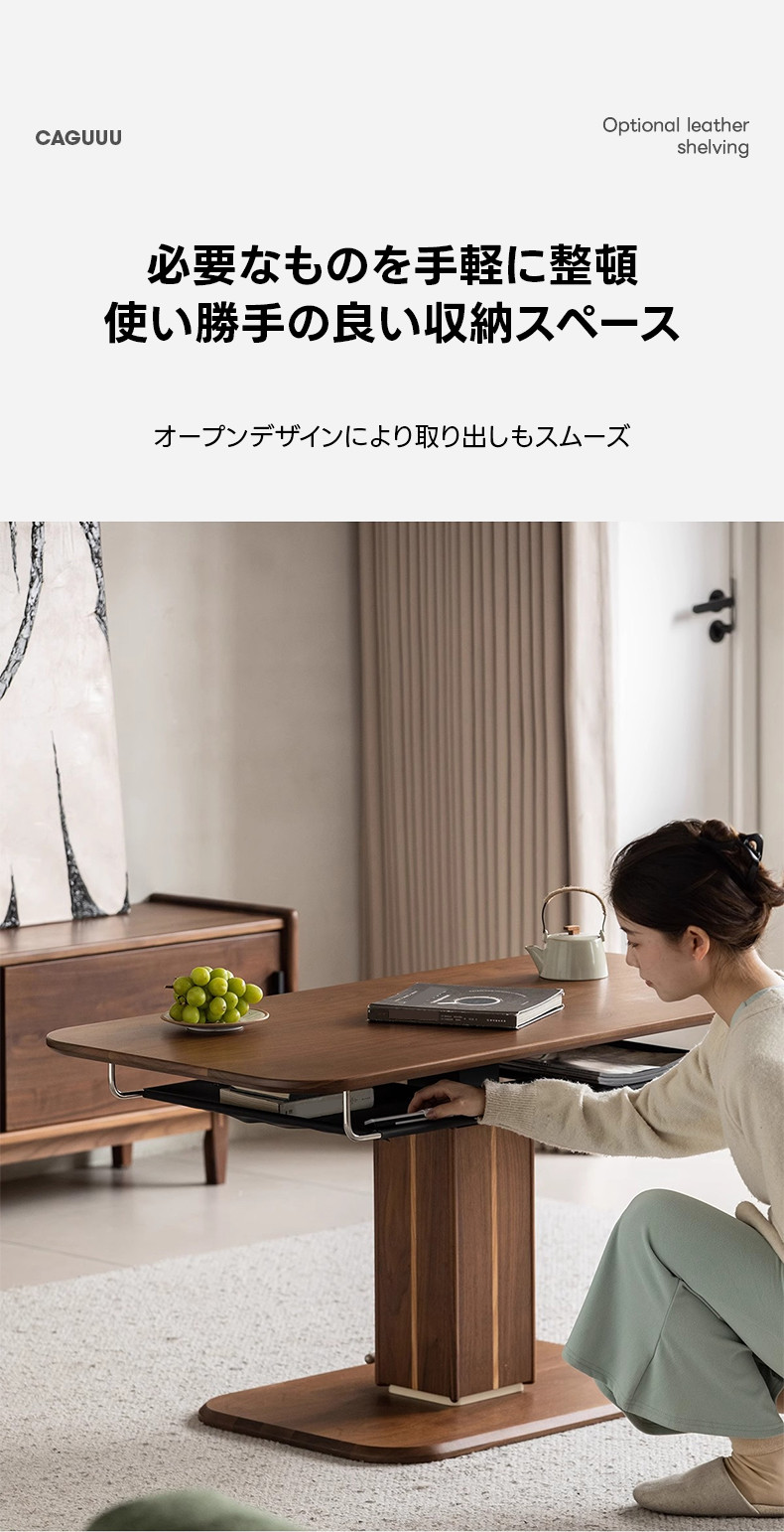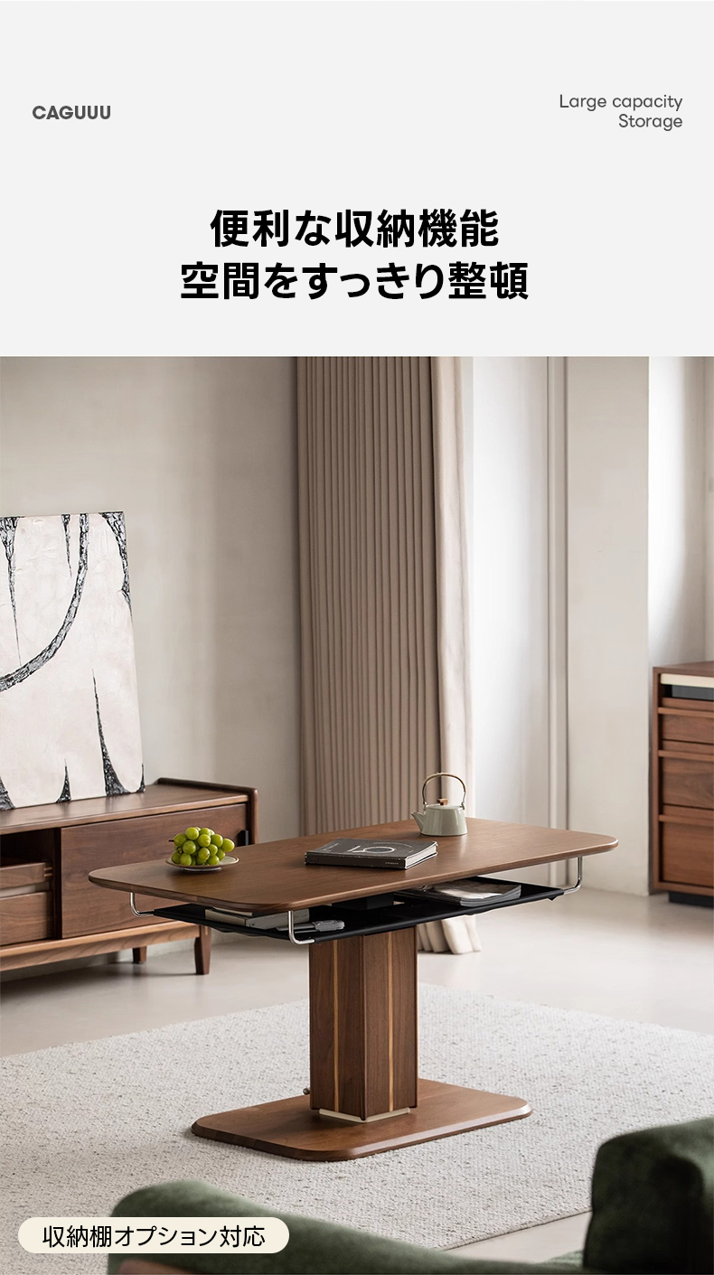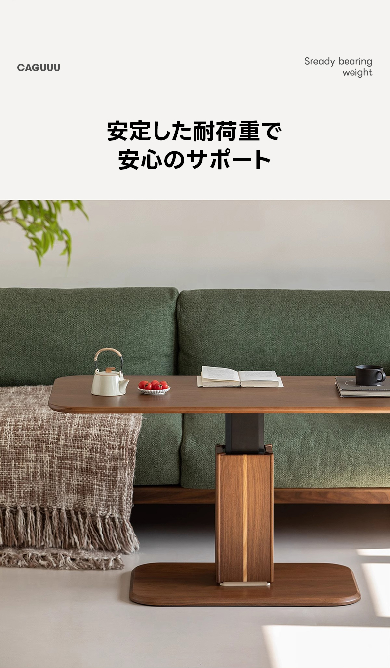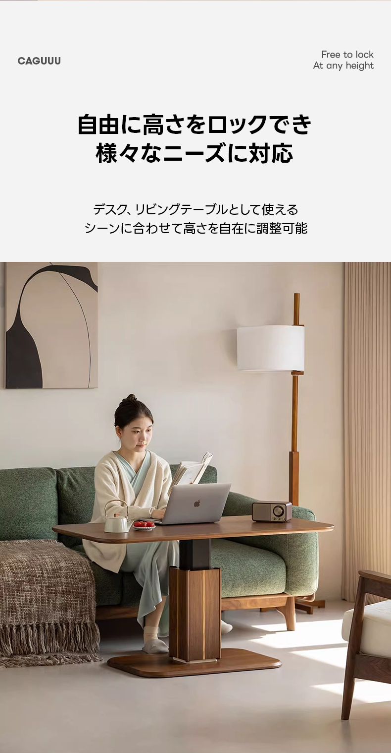 - 【多用途昇降機能】このリビングテーブルは、スムーズなガススプリング機構を搭載し、高さを52cmから75cmまで無段階で調整可能です。リビングテーブルとしてもダイニングテーブルとしても使用でき、様々なシーンで活躍します。