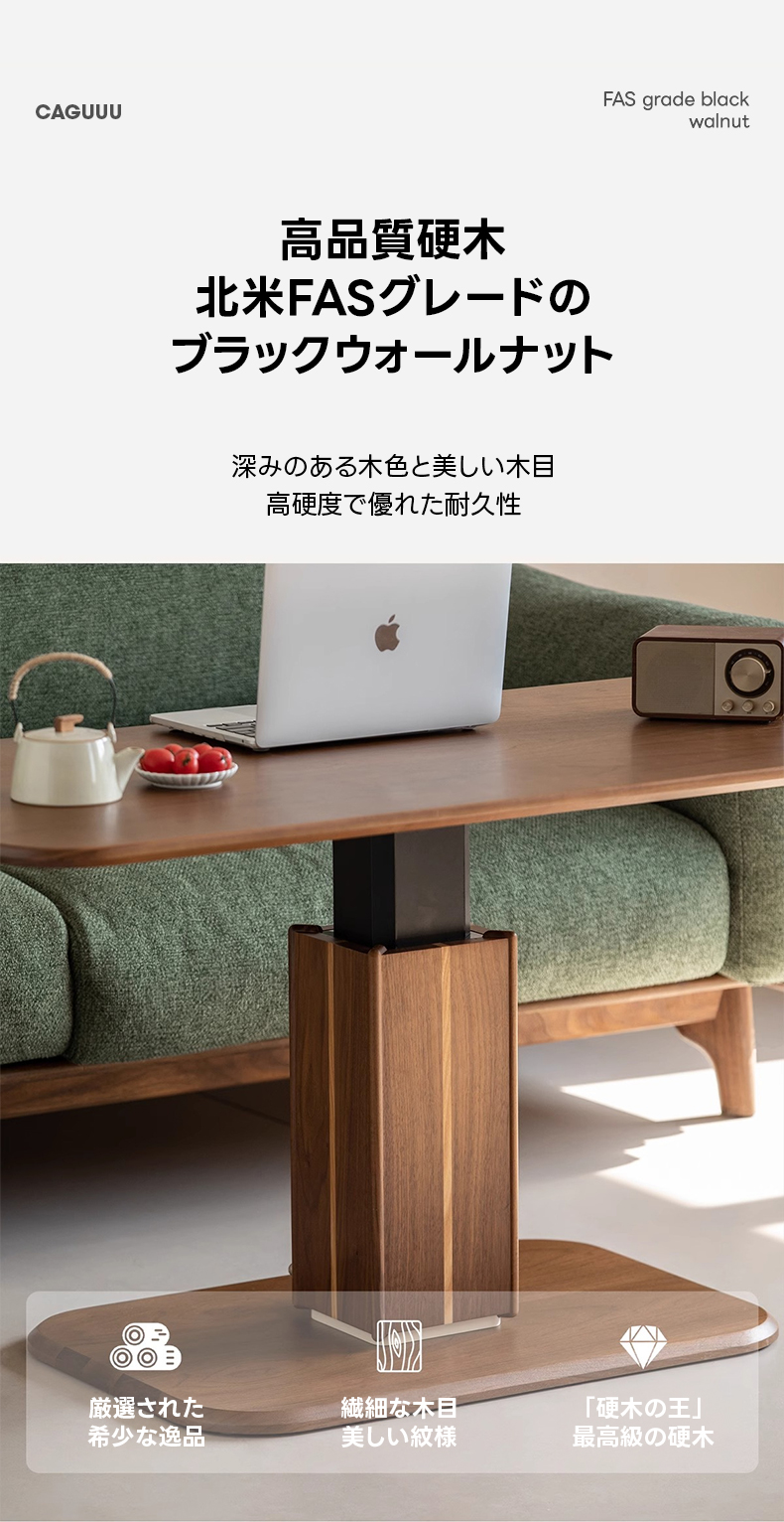 Woody Prime Walnut ウォールナット材 ヴァーティカル・リフトテーブル