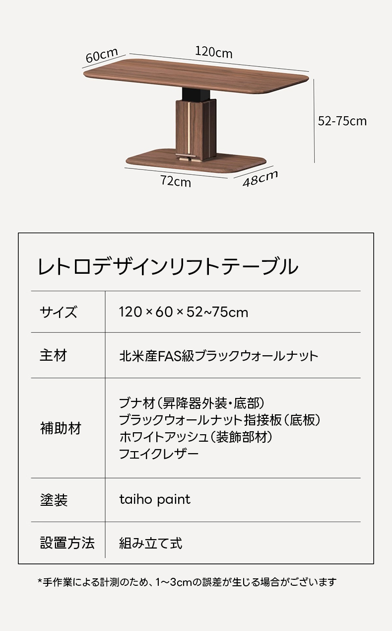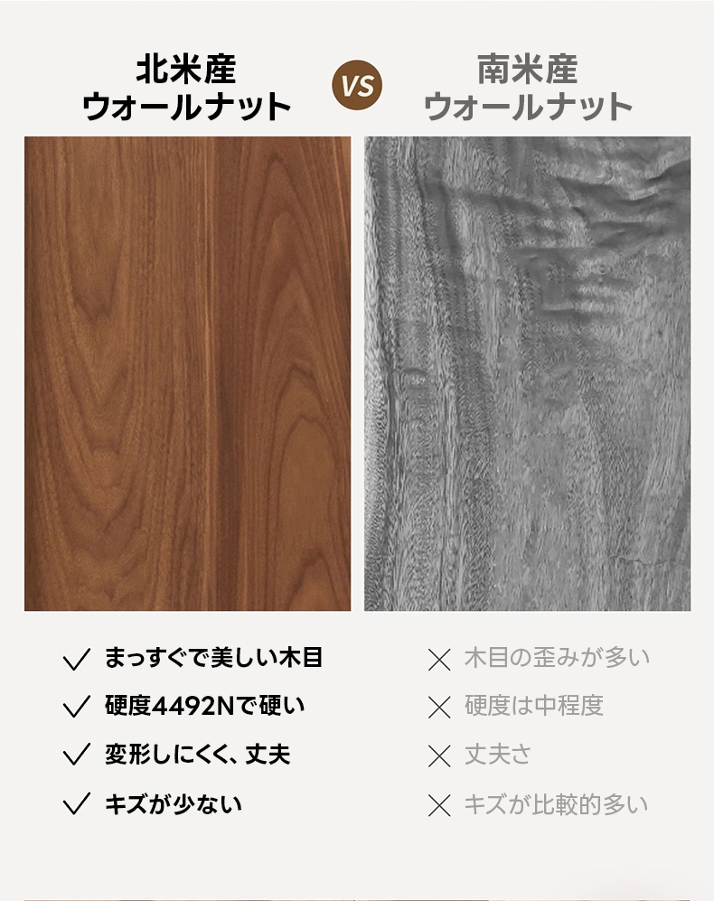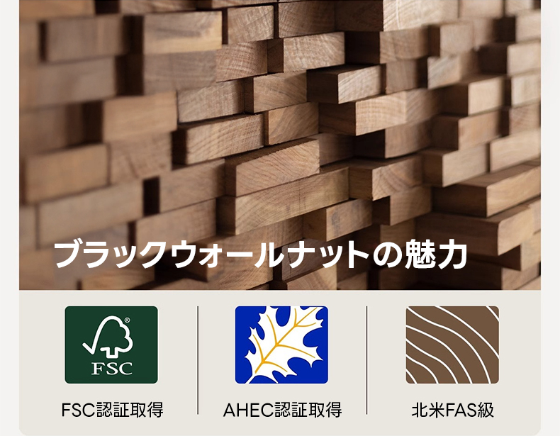 - 【高級ウォールナット材使用】北米産FAS級ブラックウォールナットを使用し、耐久性と美しい木目を実現しています。木の温かみと深みのある色合いが、空間に高級感を与えます。