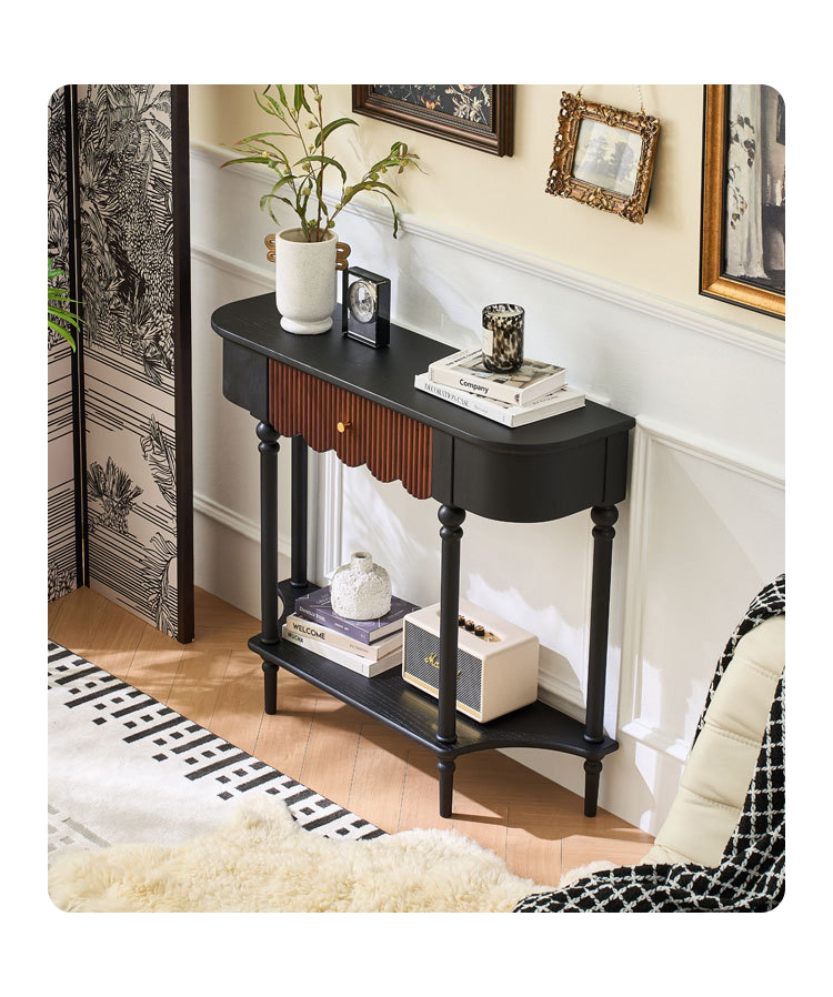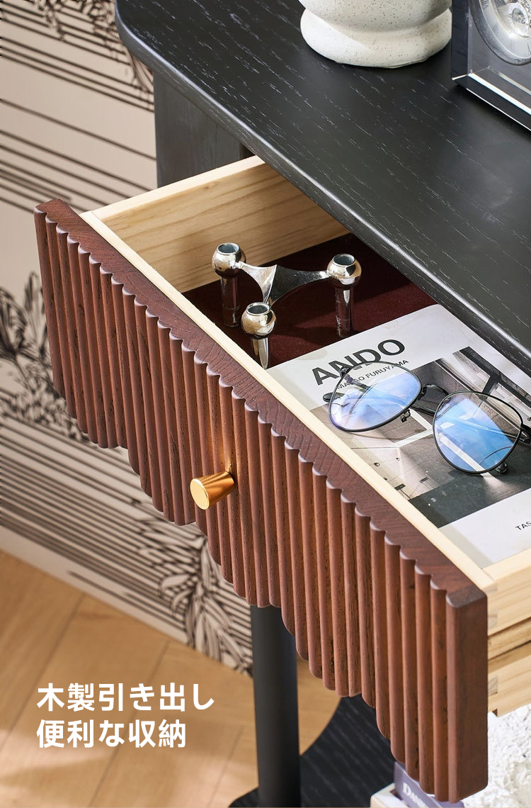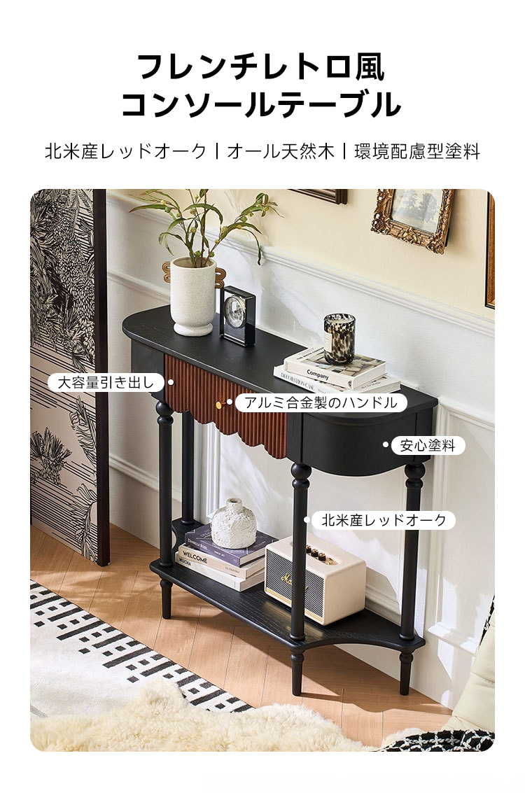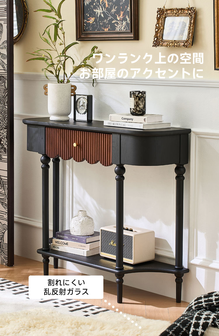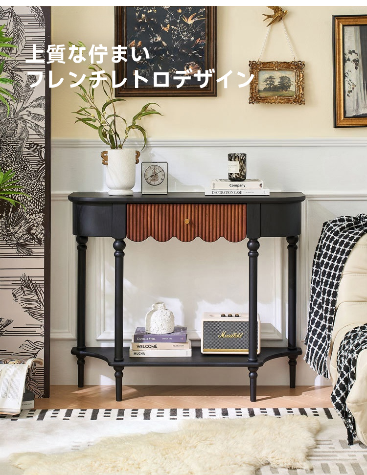 - 【多機能収納とデザイン性】ヴィンテージ風のレトロ調コンソールテーブルは、リビングや玄関をおしゃれに演出します。大容量の引き出しと追加の棚で、鍵や小物をすっきり収納可能。クラシックな雰囲気を醸し出すフレンチレトロデザインが魅力です。