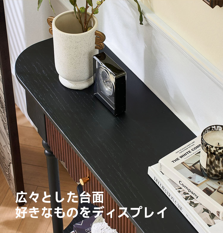 - 【多様な使用シーン】幅100cm、奥行き30cm、高さ85cmのコンパクトサイズで、一人暮らしやカップル、ファミリーに最適。リビングや玄関、エントランスなど、どんなインテリアにもマッチし、様々なシーンで活躍します。
