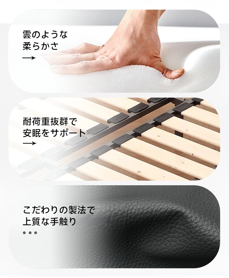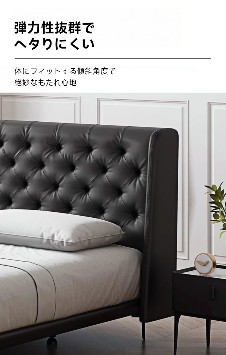 - 【快適な寄りかかり心地とデザイン】ふんわり背もたれレザーベッドは、柔らかなクッション背もたれを備え、快適な寄りかかり心地を提供します。ヴィンテージ感あふれるブラックデザインが寝室をスタイリッシュに演出し、どんなインテリアにもマッチします。