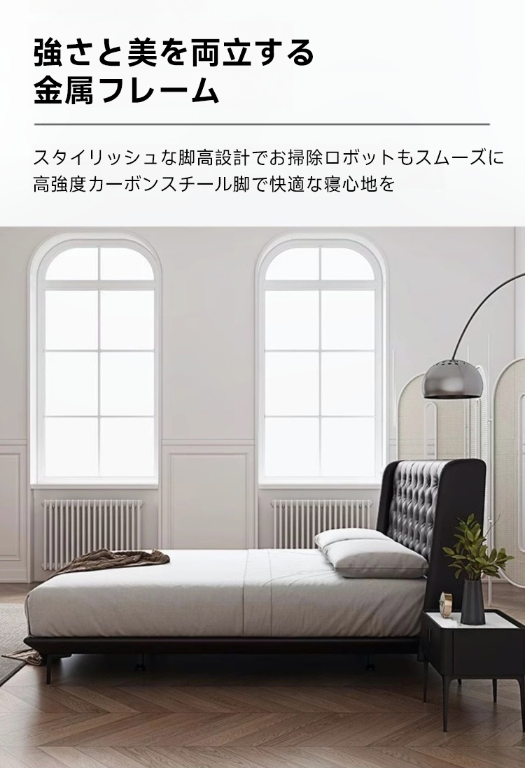 - 【高品質な材料と頑丈なフレーム】細シボ加工と浅シボ加工の2種類の高級感あるレザーを選べ、耐久性に優れています。ベッドフレームは幅広で頑丈な木材とスチールの組み合わせで作られており、安定した寝心地を実現します。