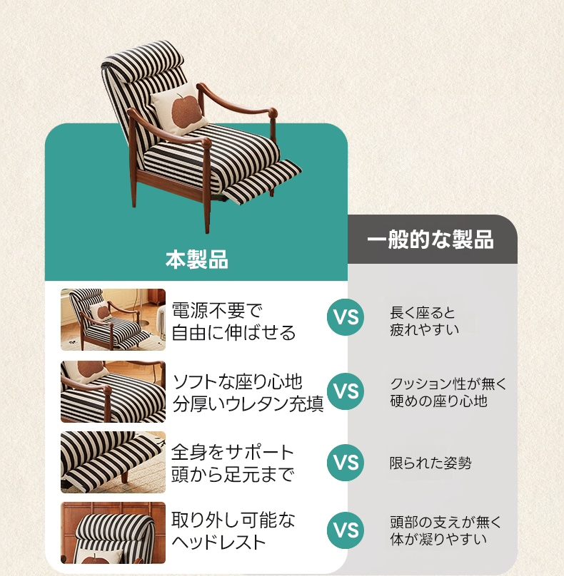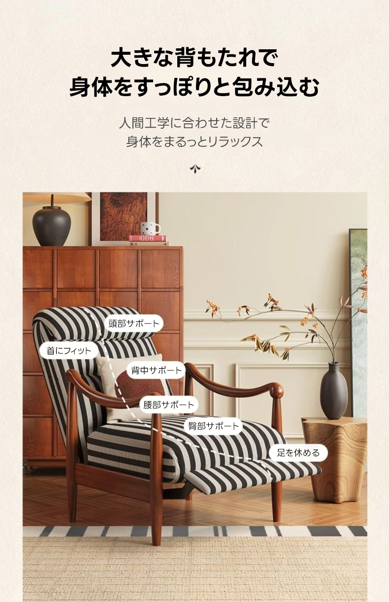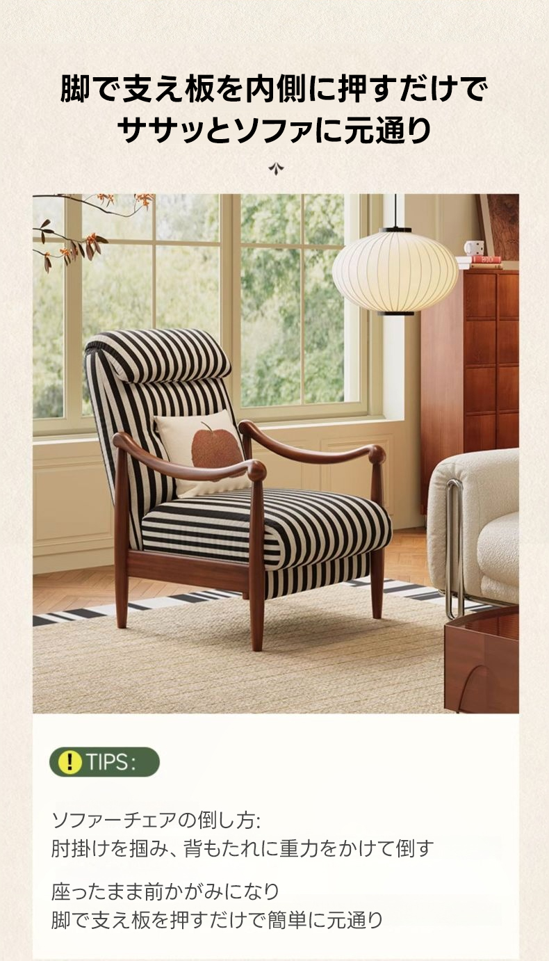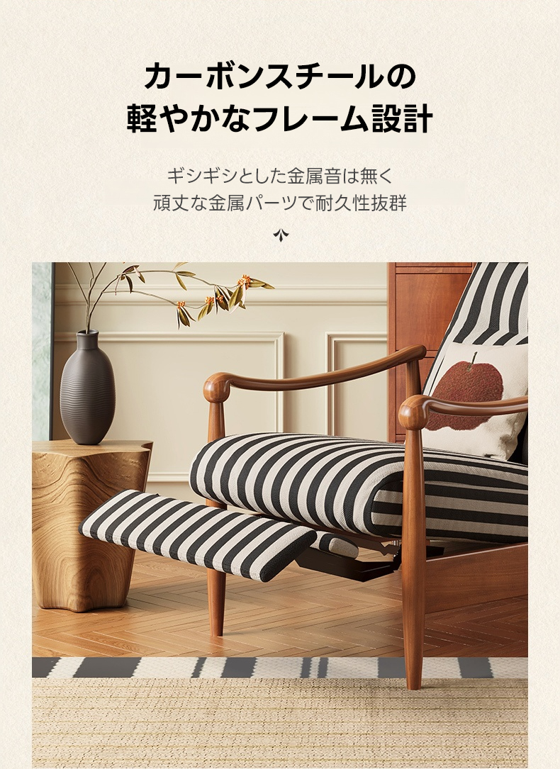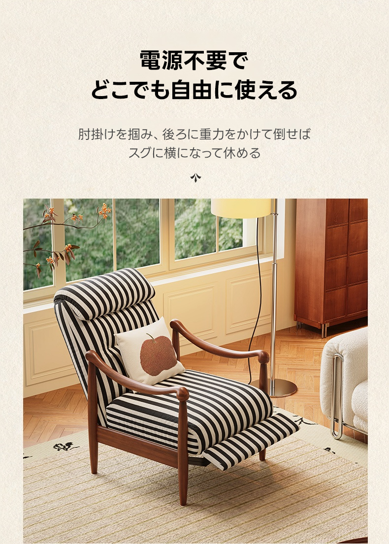 - 【快適なリクライニング機能】アンティーク調リクライニングソファチェアは、電源不要でどこでも自由にリクライニング可能です。肘掛けをつかみ、体重をかけるだけで簡単にリクライニングでき、リラックスした姿勢を保てます。