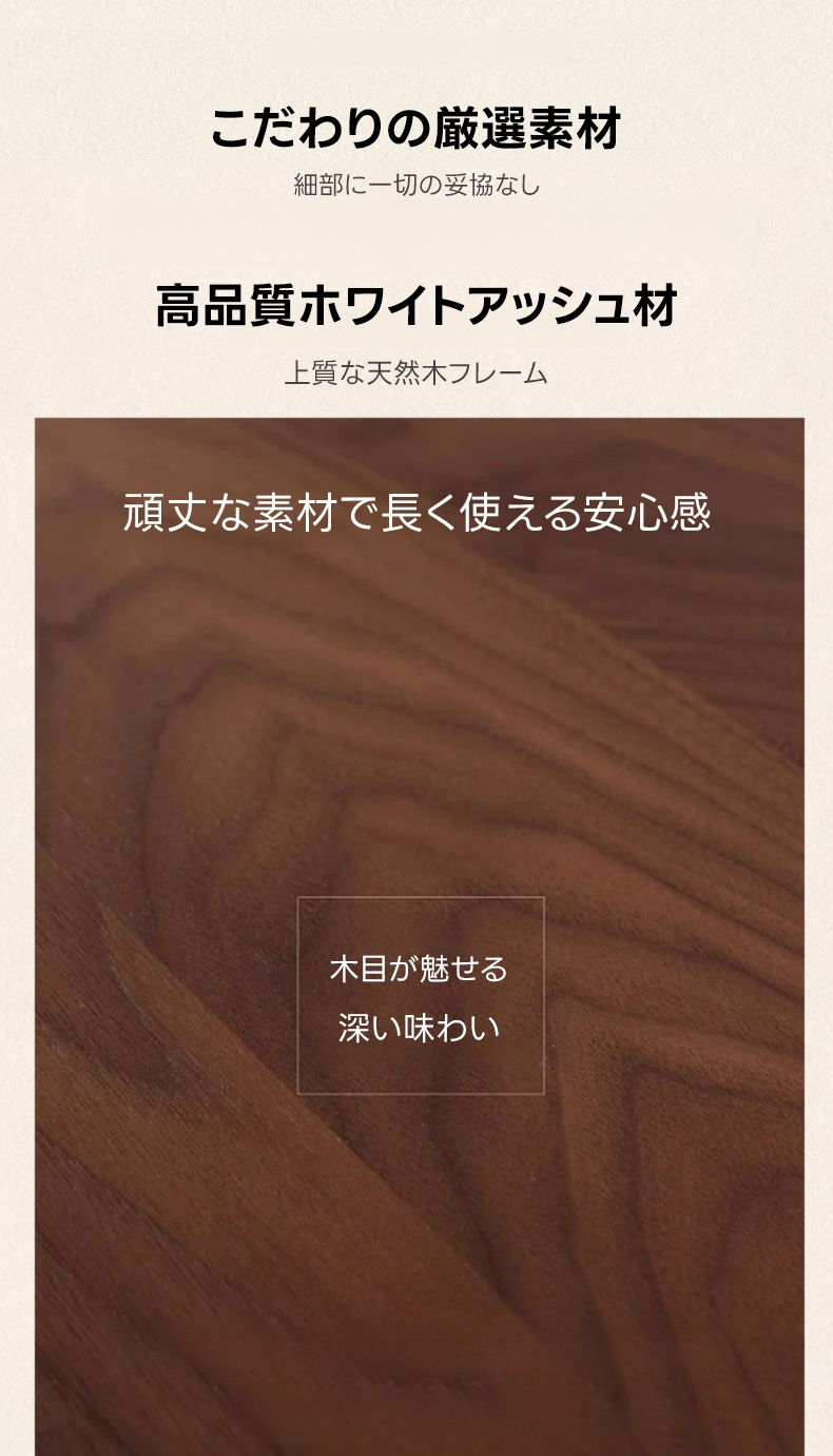 - 【高品質素材とデザイン】フレームには頑丈なホワイトアッシュを使用し、長期間の使用にも耐える安心感を提供します。クッションには高反発ウレタンを採用し、柔らかく快適な座り心地を実現しています。