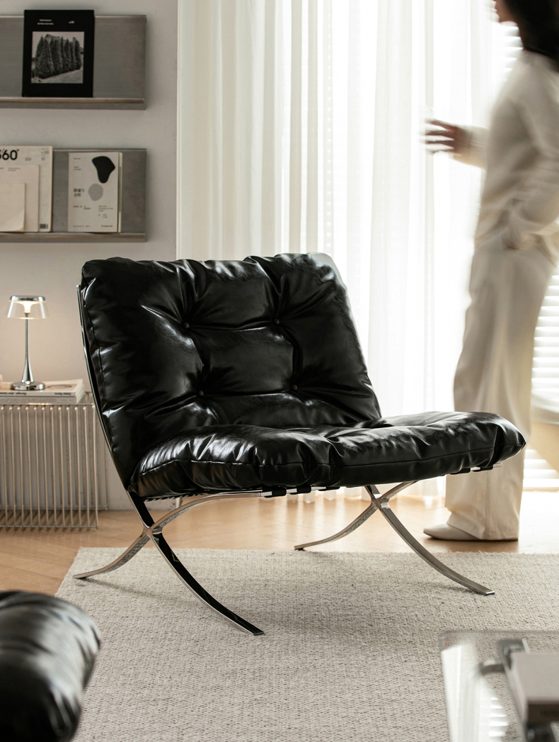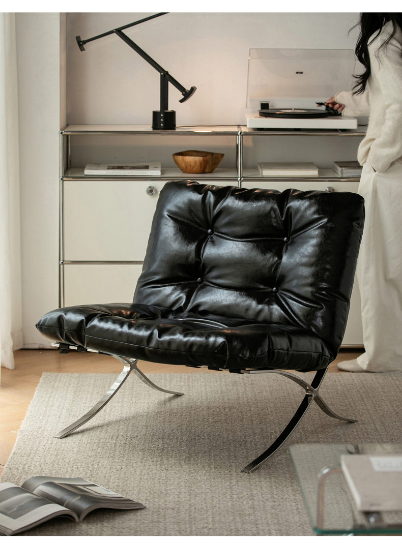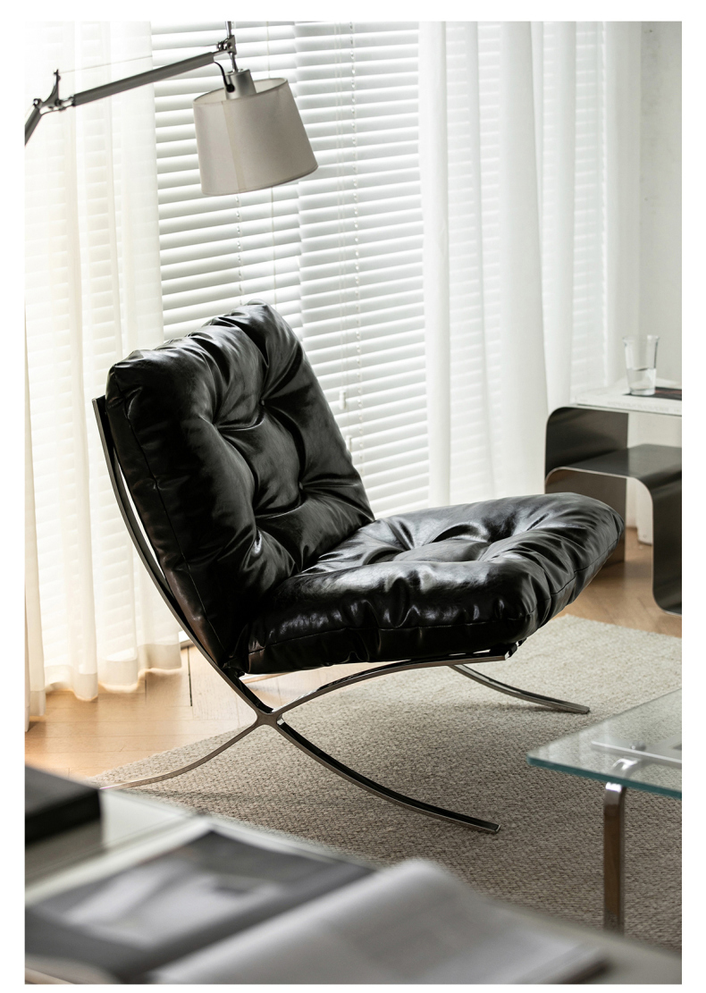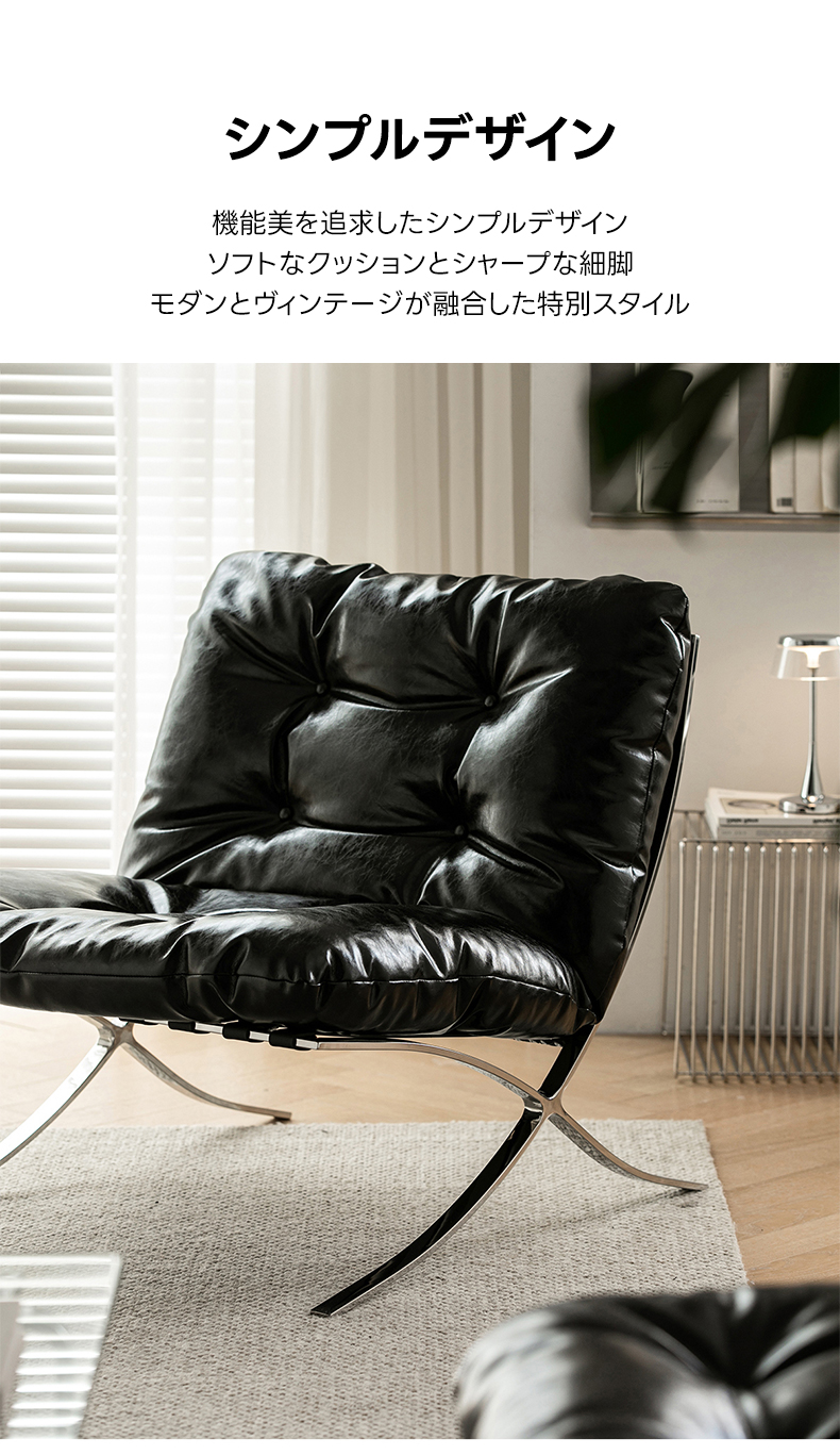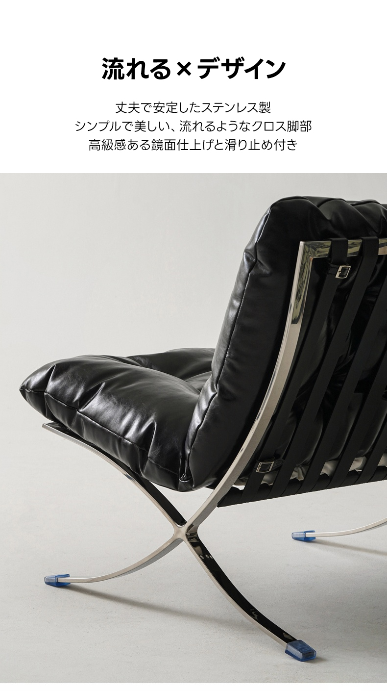 - 【シンプルモダンなデザイン】クロスラウンジチェアは、シンプルで美しい不規則なデザインを採用。モダンとヴィンテージのスタイルを融合し、どんなインテリアにもマッチします。ステンレス製のクロス脚部が滑らかで流れるようなラインを持ち、見た目の美しさを際立たせます。