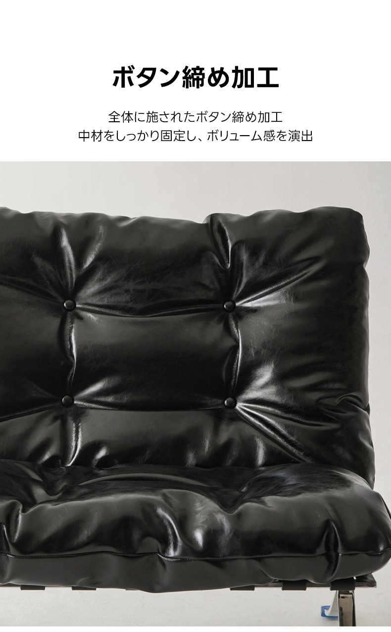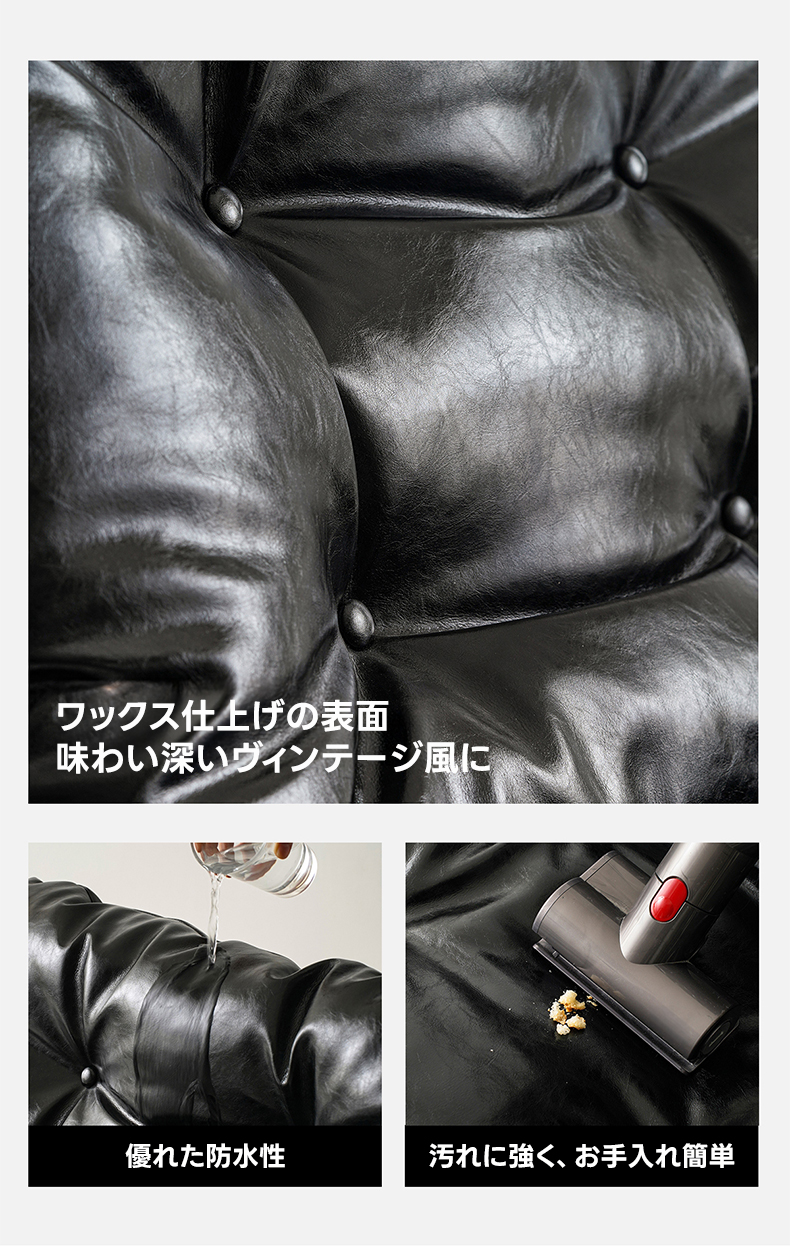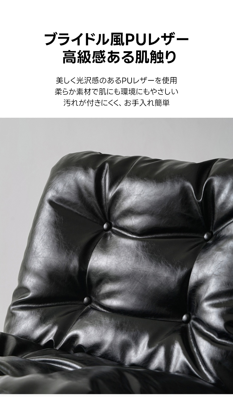 - 【高品質な素材と設計】ブラックの合皮レザーを使用し、高級感を演出。防水・防汚加工が施されているため、お手入れも簡単です。中材にはホワイトグースダウンと真綿を使用し、座り心地が非常に快適です。