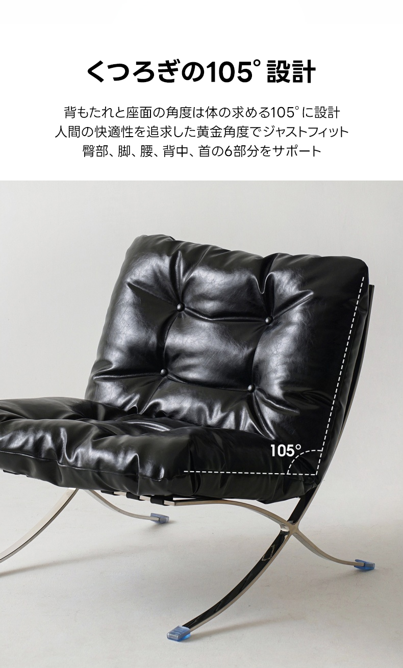 - 【快適な座り心地】105°の背もたれは人体工学に基づいて設計されており、腰や背中をしっかりとサポートします。長時間の使用でも快適な座り心地を提供し、リラックスした時間を過ごせます。