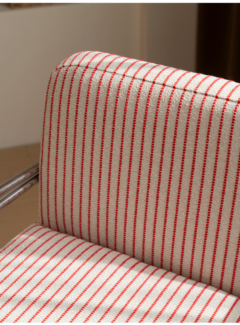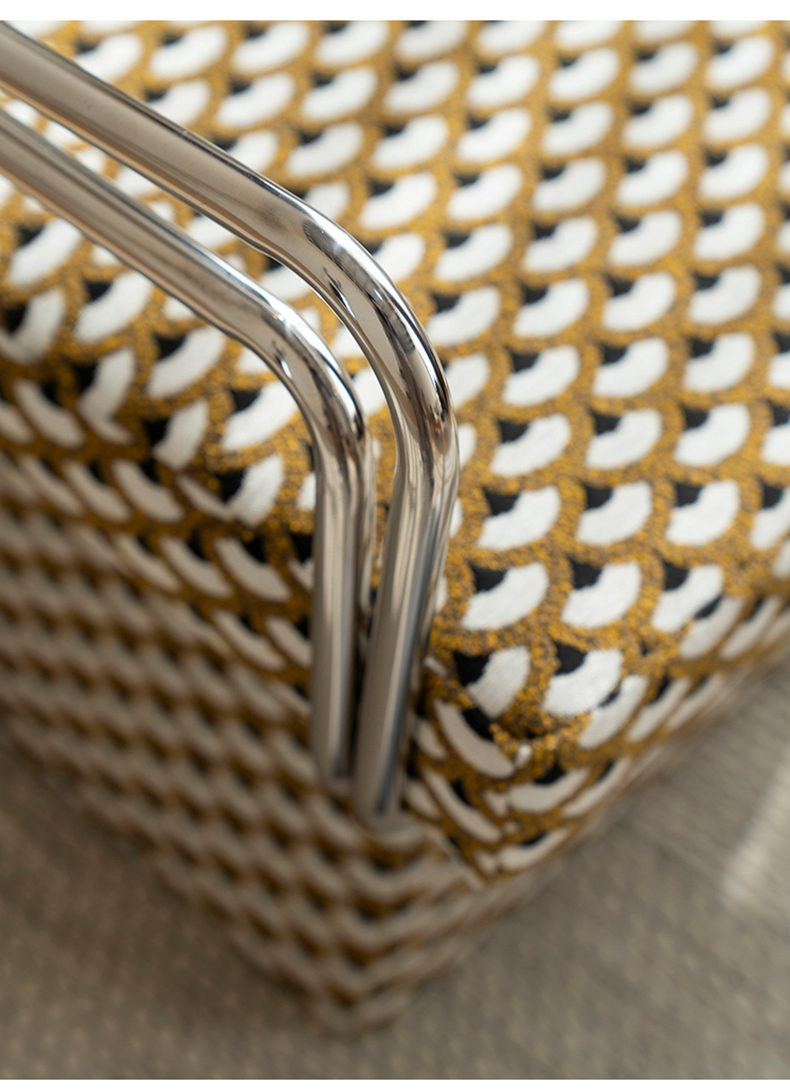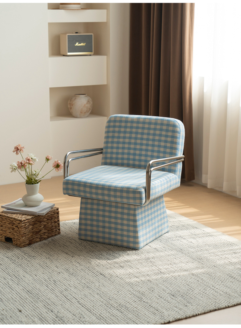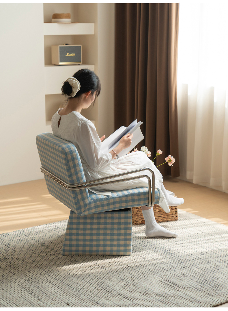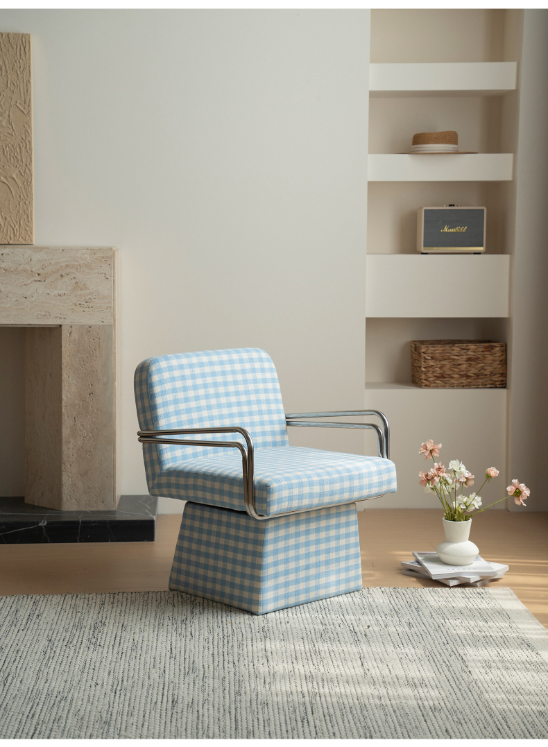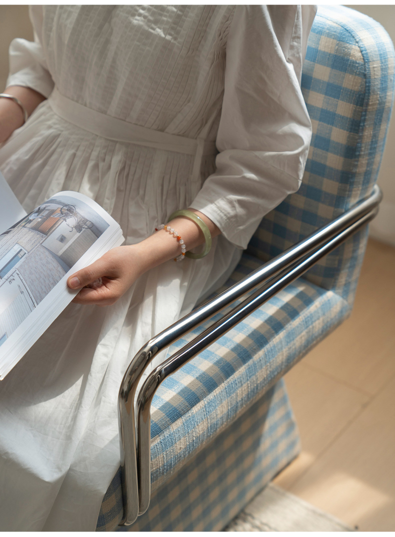 - 【高品質な素材とデザイン】ステンレス製の手すりと積層合板フレームを使用し、耐久性と安定性を兼ね備えています。レトロなチェック柄が施されたファブリックが魅力的です。