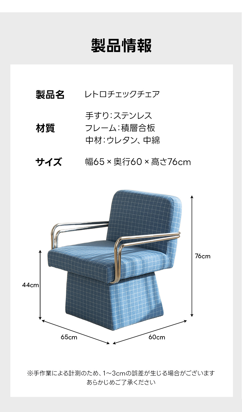 - 【快適な座り心地】レトロチェックチェアは、ウレタンと中綿を使用した中材により、長時間座っても疲れにくい快適な座り心地を提供します。