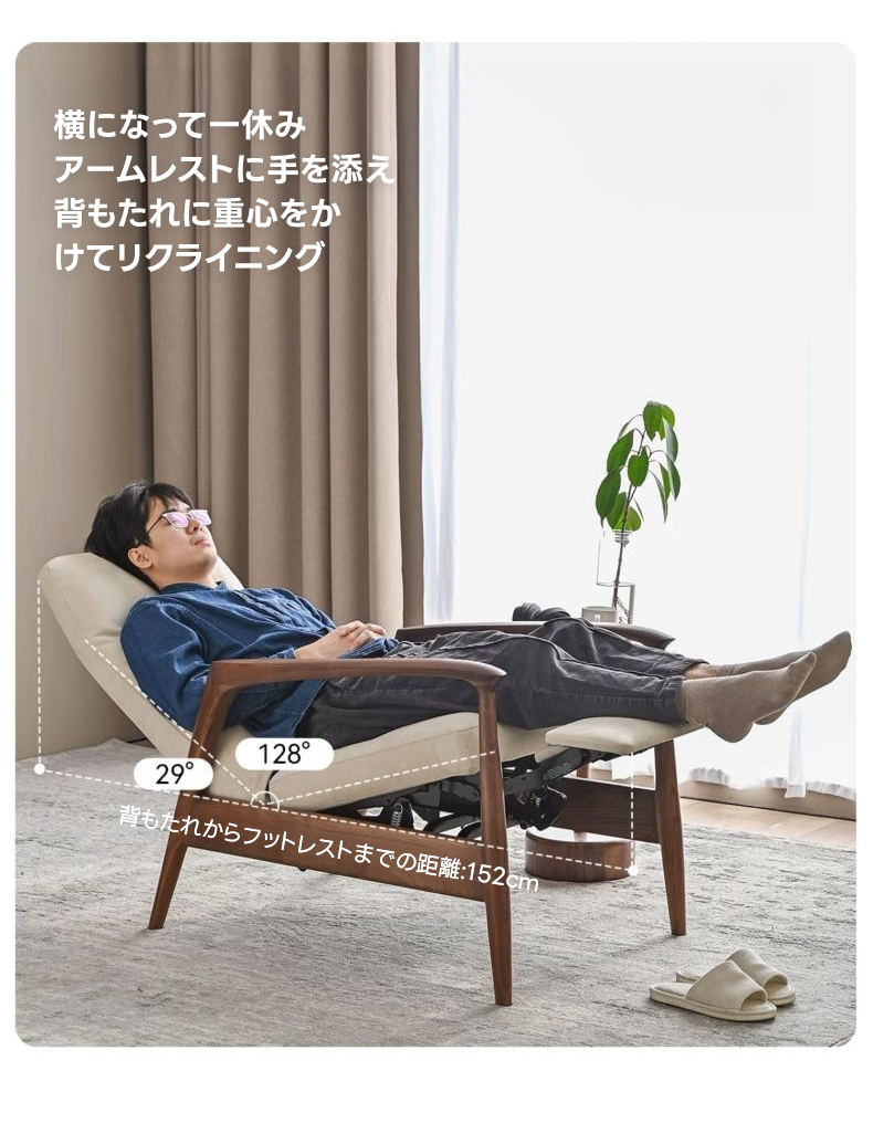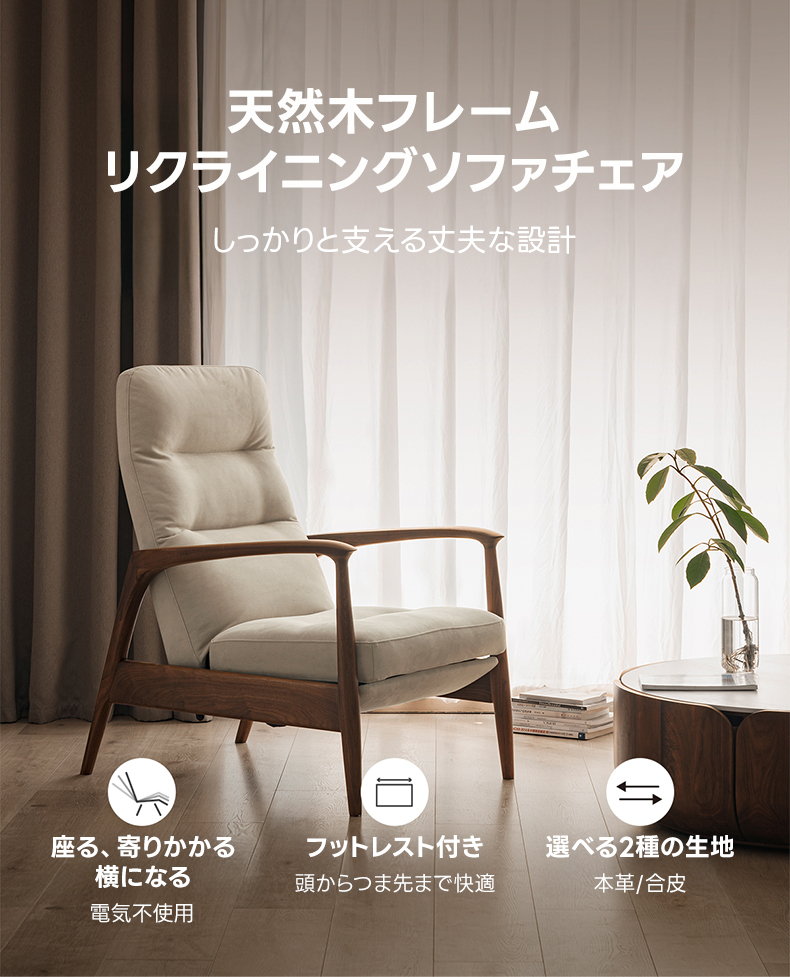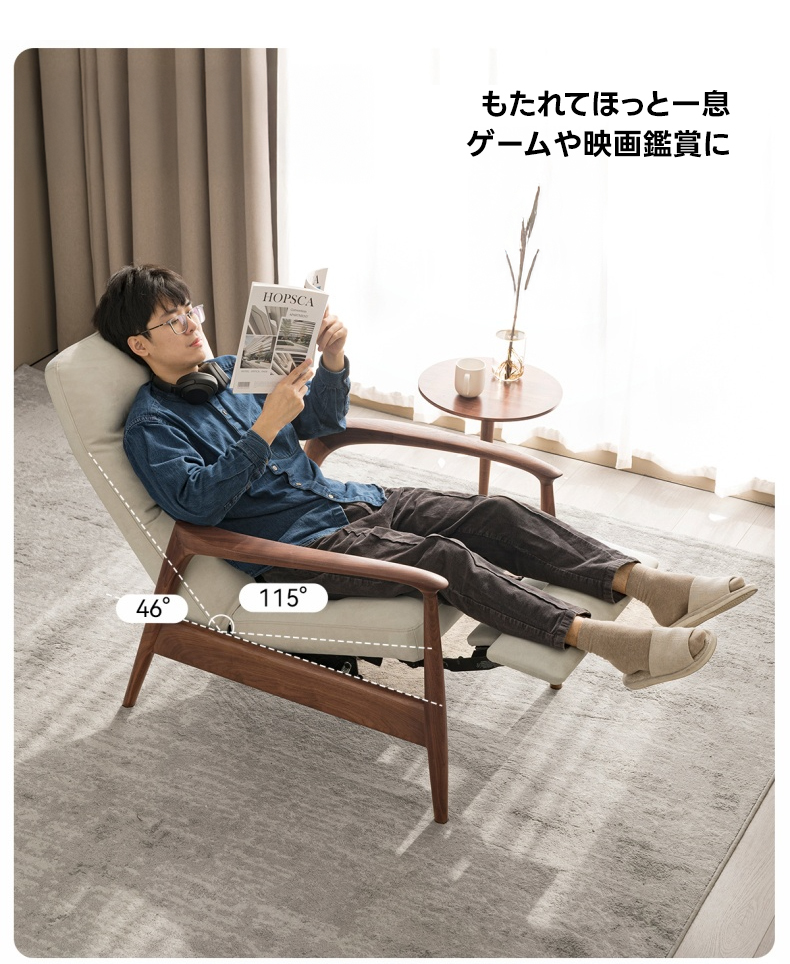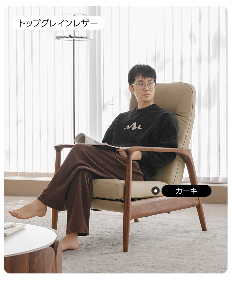 天然木フレームリクライニング ソファチェア