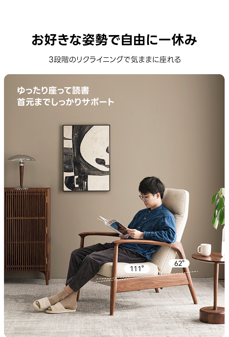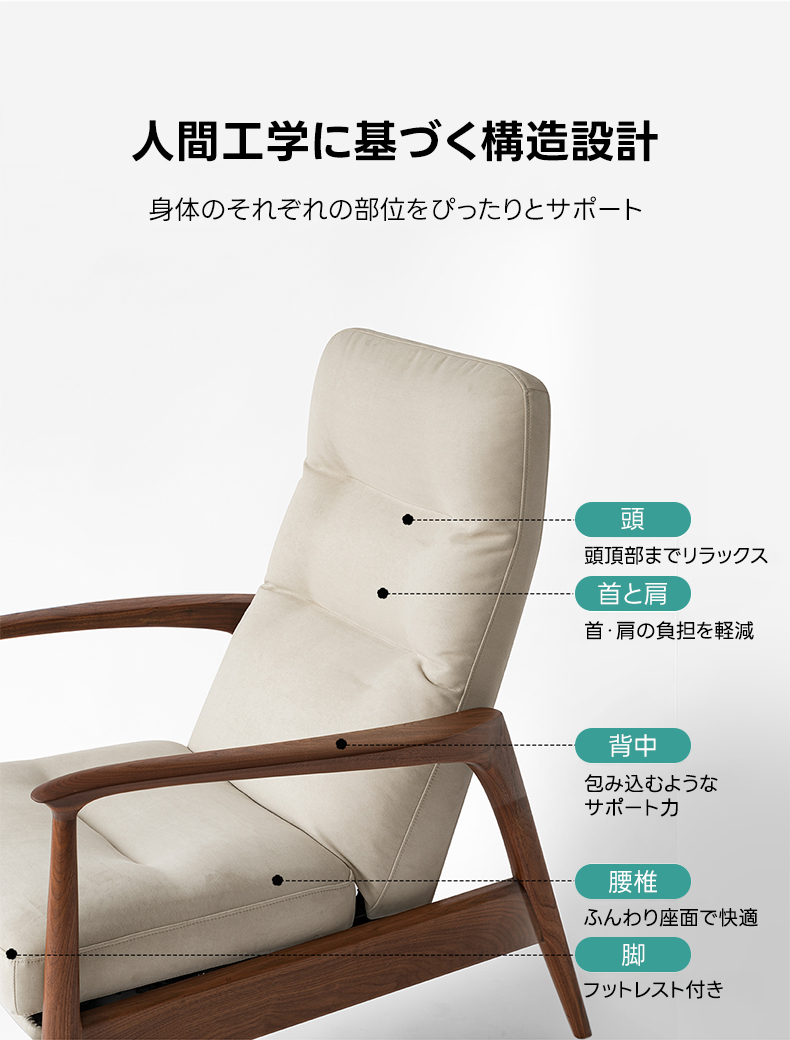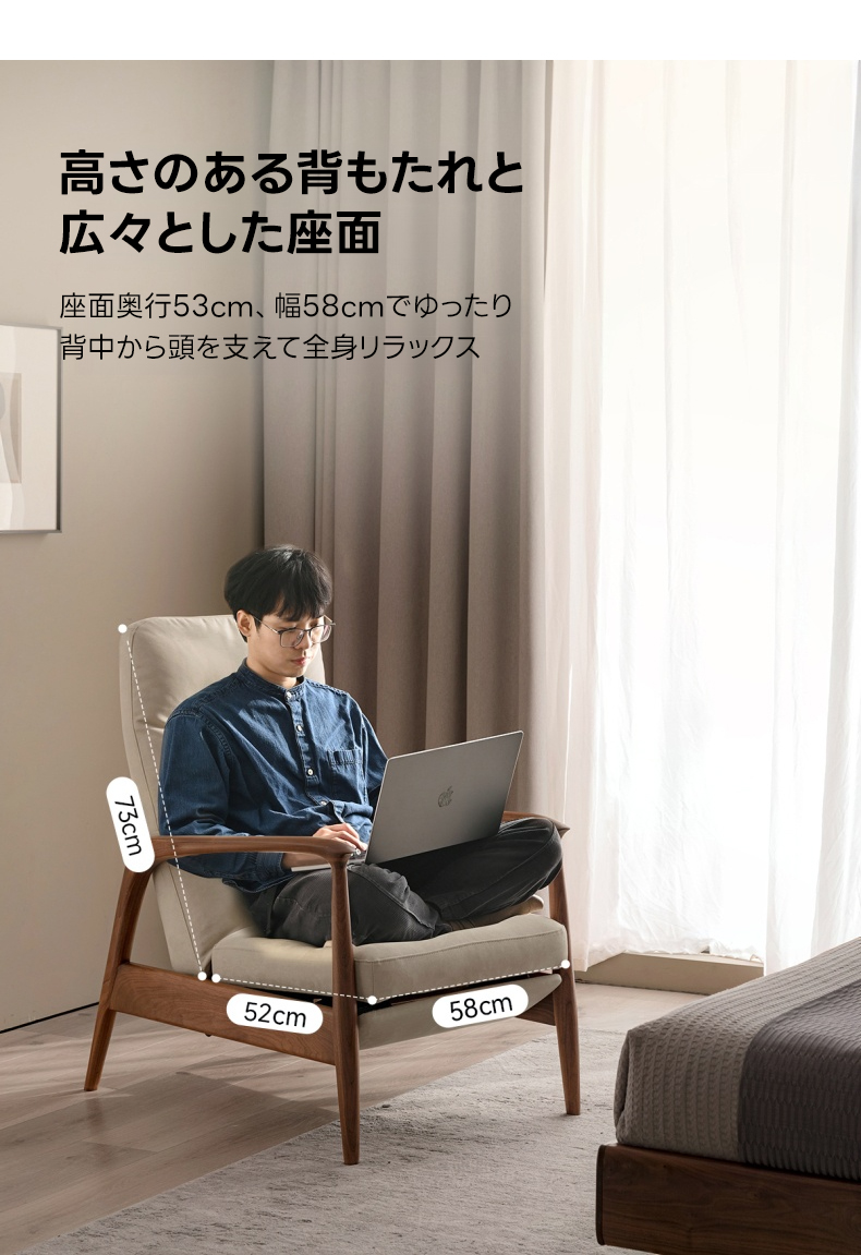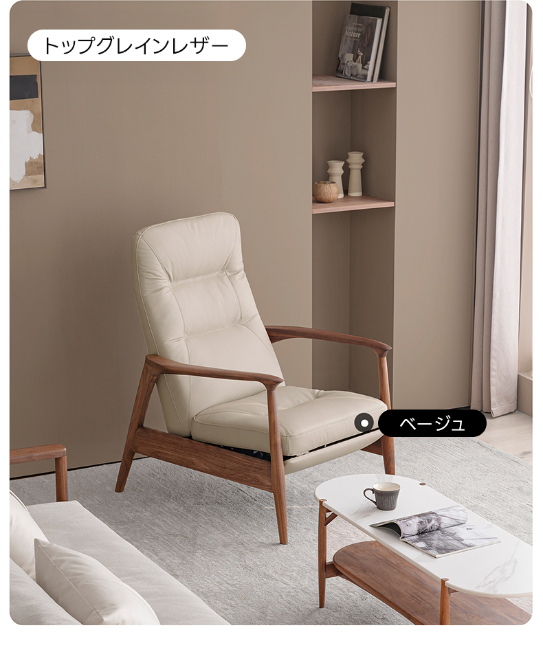 天然木フレームリクライニング ソファチェア