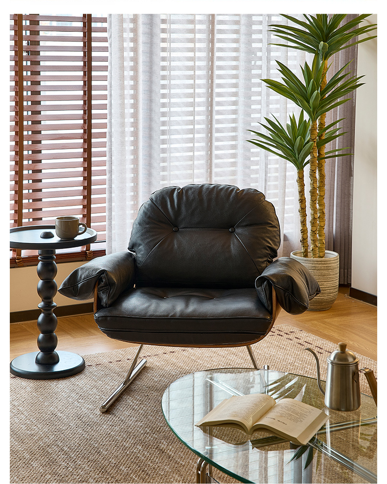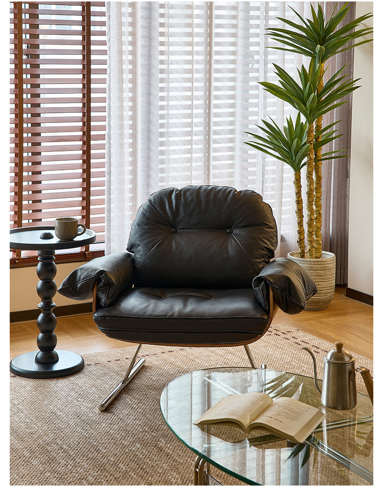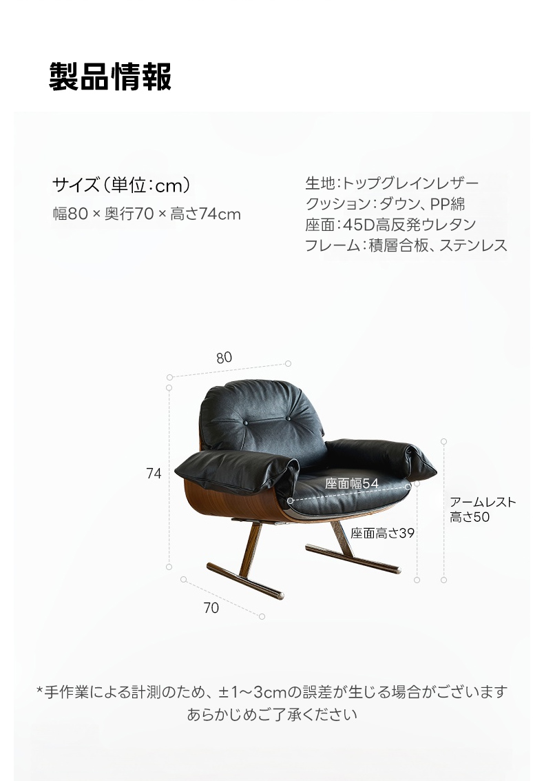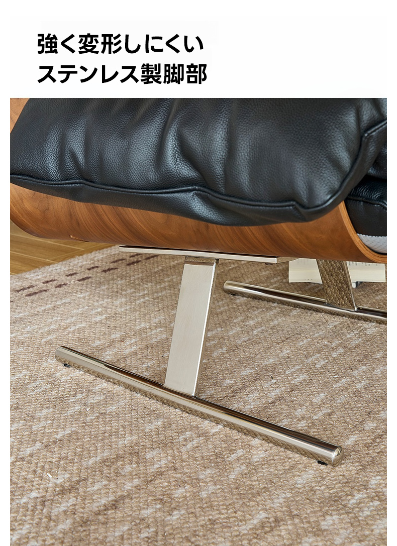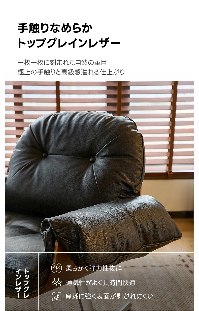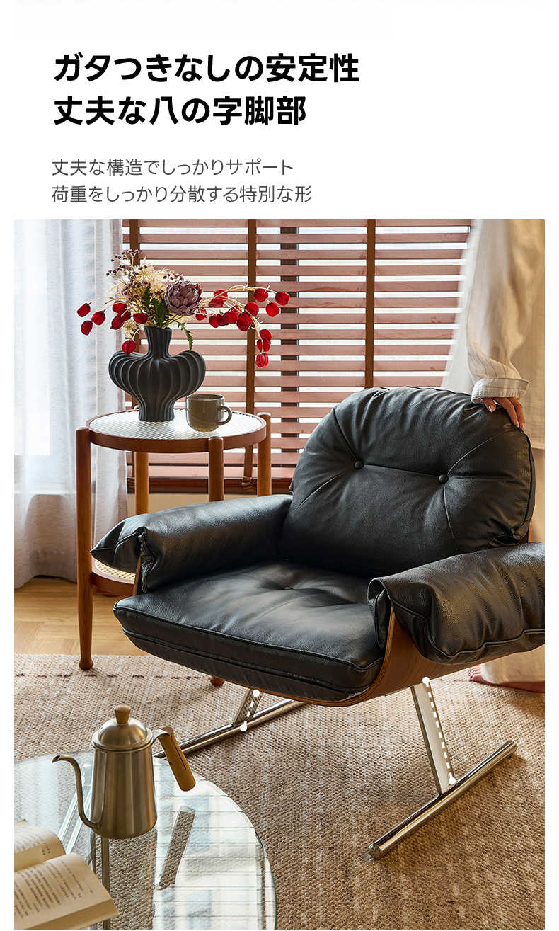 - 【高品質な素材とデザイン】:トップグレインレザーを使用し、滑らかな手触りと高級感を提供。ステンレス製の脚部は安定感があり、ガタつきません。曲げ加工が施されたフレームは美しいラインを描き、耐久性にも優れています。