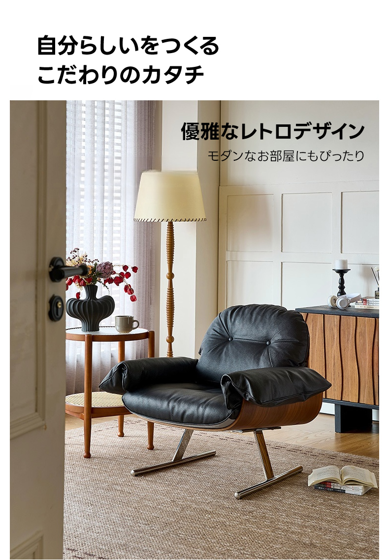 - 【多様なシーンにフィット】:このチェアは寝室や書斎、リビングなど様々な場所で活躍します。一人暮らしやカップル、ファミリーに最適で、どんなインテリアにも調和します。ヴィンテージ感とモダンなデザインが魅力です。