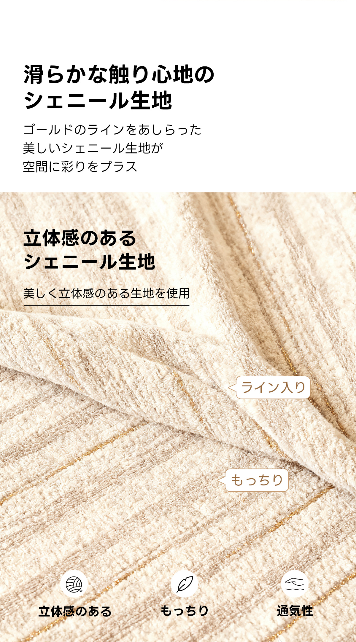 - 【高品質な素材とデザイン】滑らかな触り心地のシェニール織とゴールドのラインが美しい空間を演出します。クルミ材を使用したフレームは耐荷重性能に優れ、安定感があります。環境に優しいニスが使用されています。