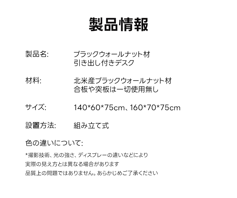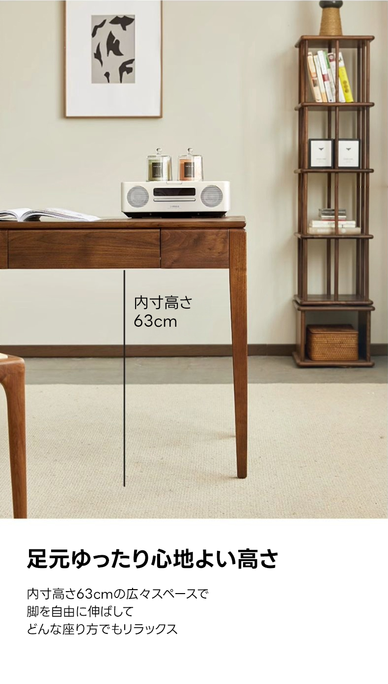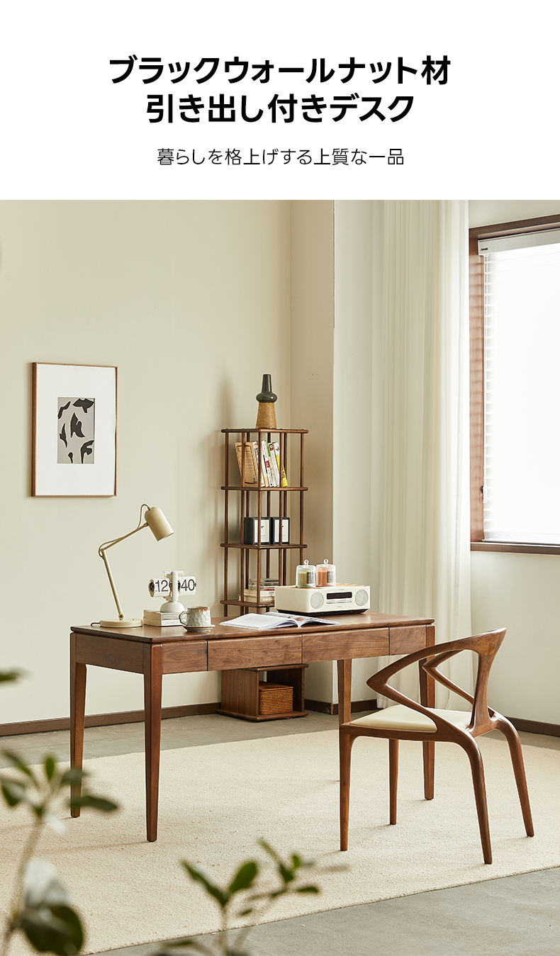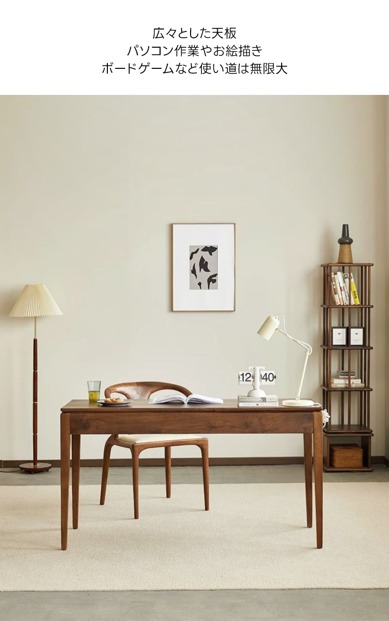 - 【高級ブラックウォールナット材使用】北米産FAS級ブラックウォールナット材を使用し、合板や突板を一切使用しない天然素材の魅力を活かした仕上がりです。美しい木目と深みのある色合いが特徴です。