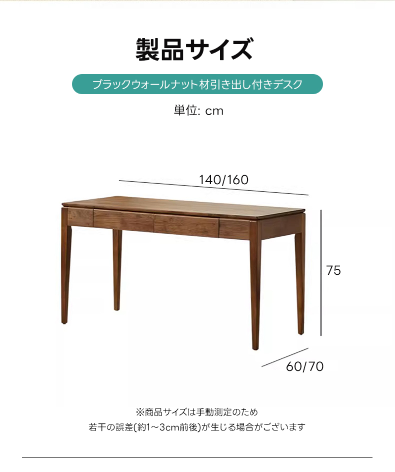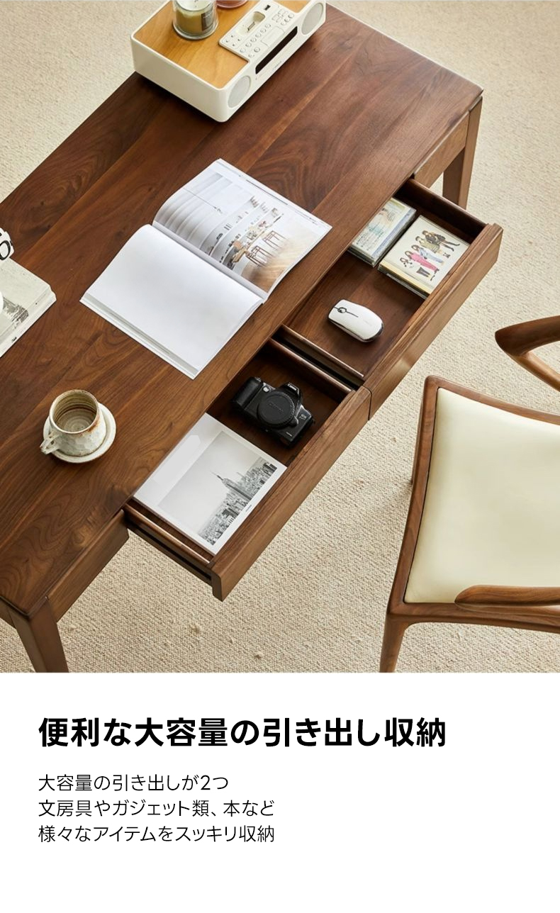 ブラックウォールナット材引き出し付きデスク