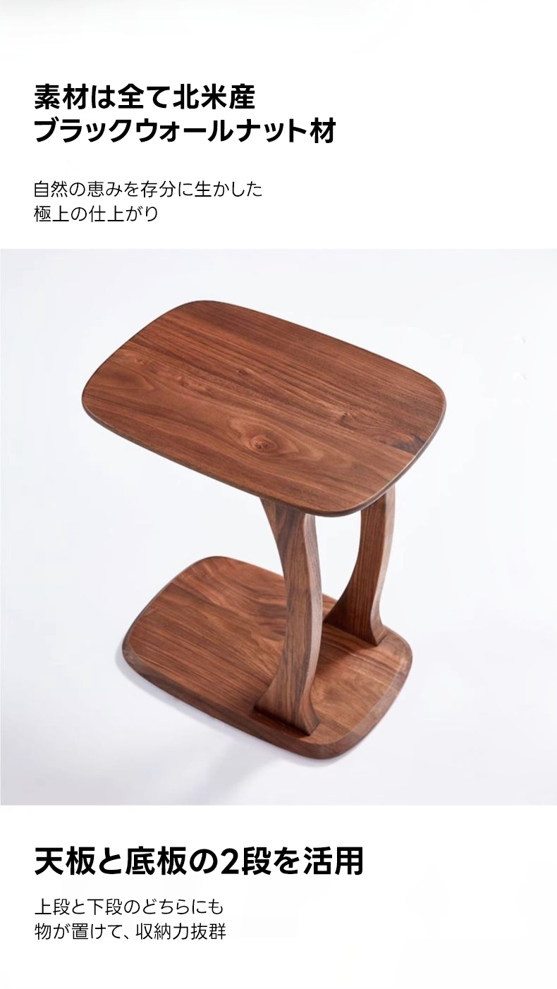 - 【優れた収納力とデザイン】ブラックウォールナット材を使用したこのサイドテーブルは、天板と底板の2段構造により、収納力が抜群です。ソファやベッドサイドにぴったりのサイズで、スタイリッシュに配置できます。