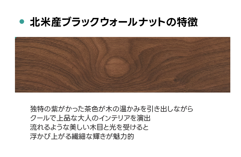 - 【高品質な素材と仕上げ】北米産のブラックウォールナット材を使用し、ドイツ製オスモワックスによるエコワックスオイル塗装で仕上げています。環境にも優しく、長く愛用できる品質です。