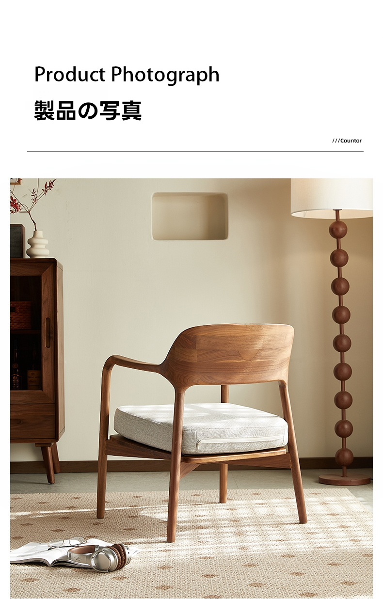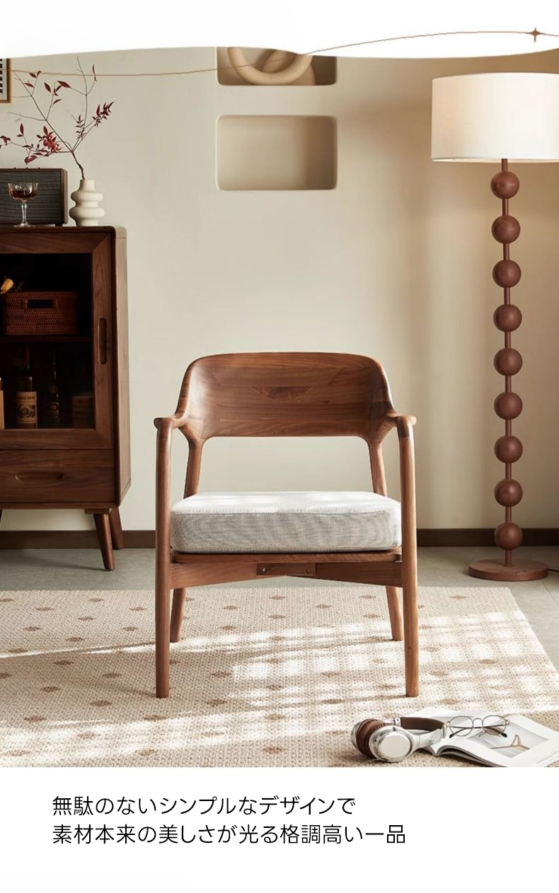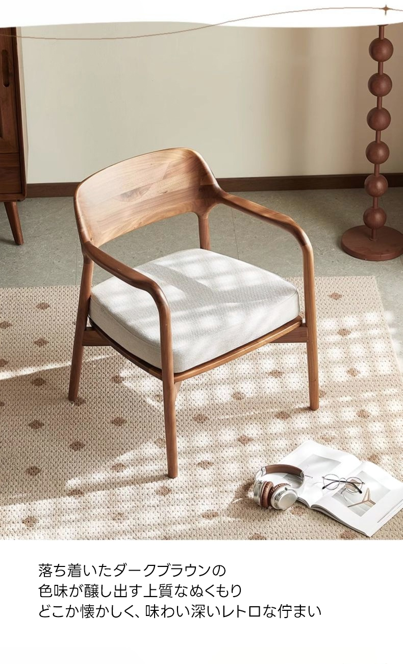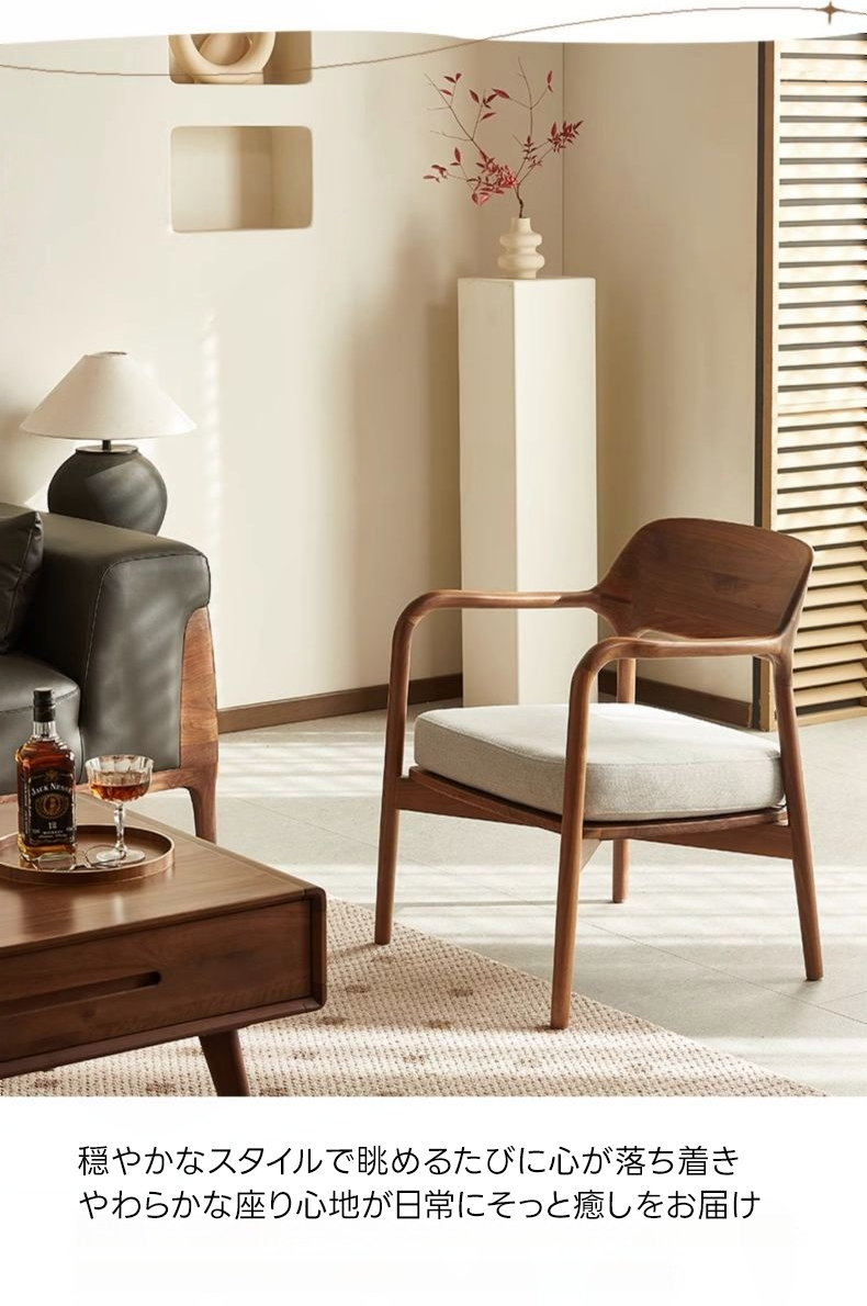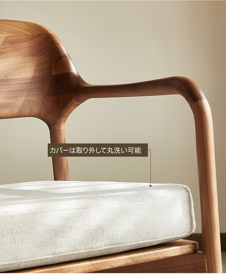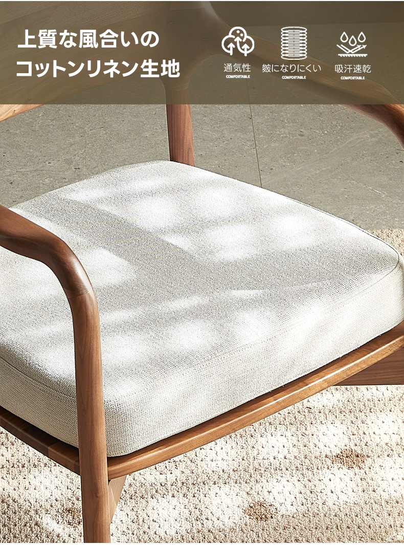 ブラックウォールナット材コットンリネン生地クッションチェア