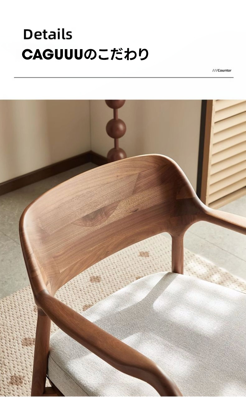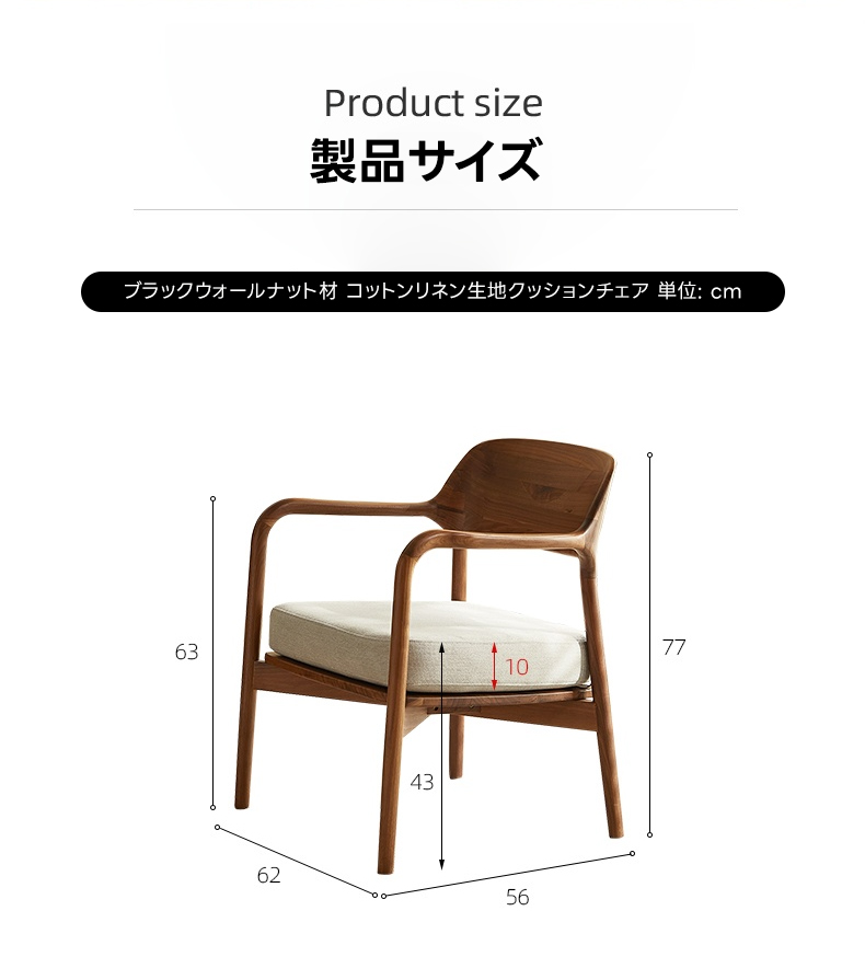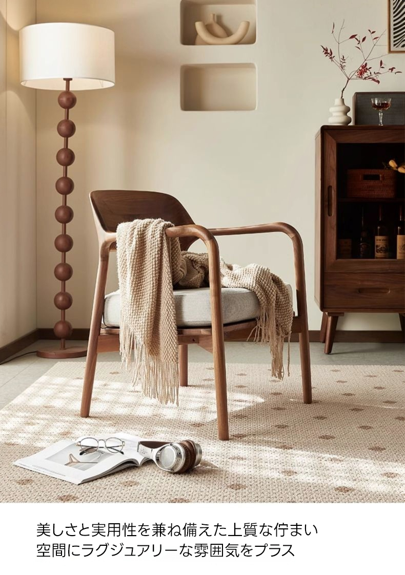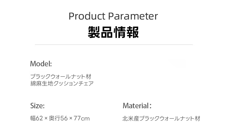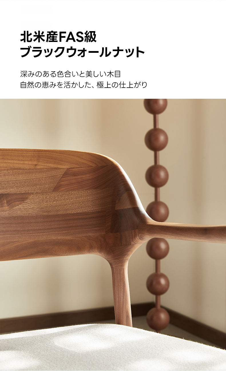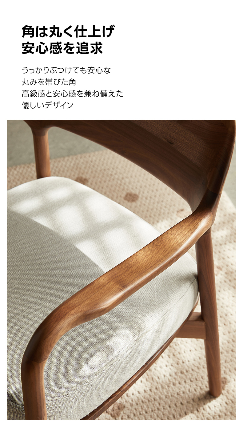 ブラックウォールナット材コットンリネン生地クッションチェア