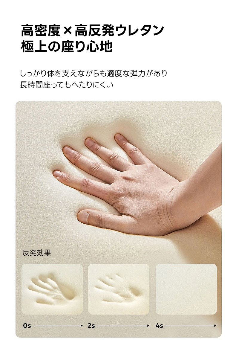 - 【快適な座り心地とサポート力】高密度×高反発ウレタンフォームを採用し、しっかりとしたサポート力と快適な座り心地を提供。長時間の使用でもへたりにくく、体をしっかり支えます。
