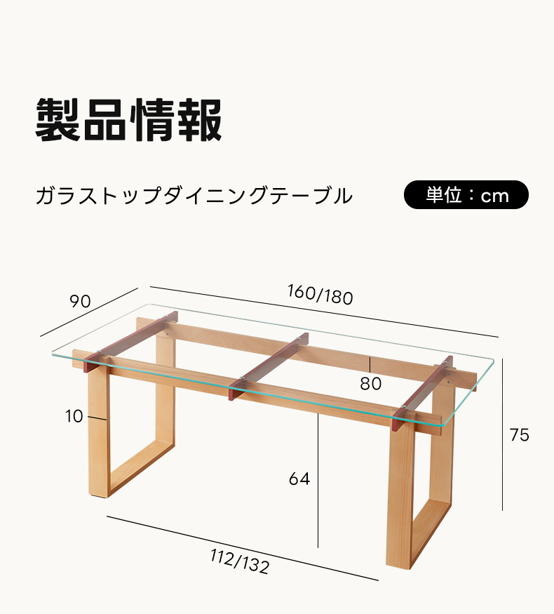 - 【高品質な素材とデザイン】ブナ材の脚と1cm厚の強化ガラスを使用し、耐久性と美しさを両立。ナチュラルブラウンの色合いがどんなインテリアにもマッチし、洗練された空間を演出します。