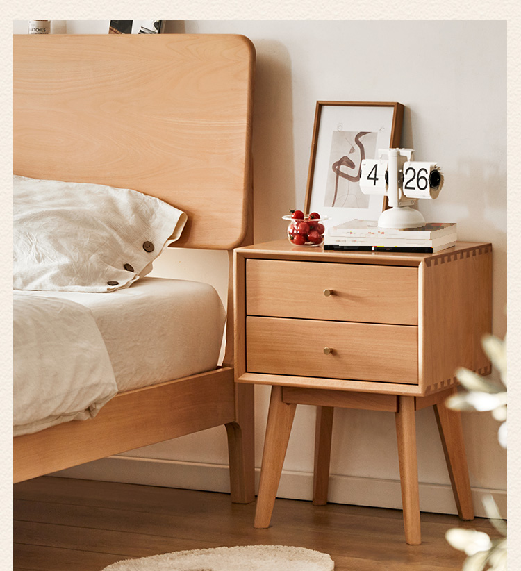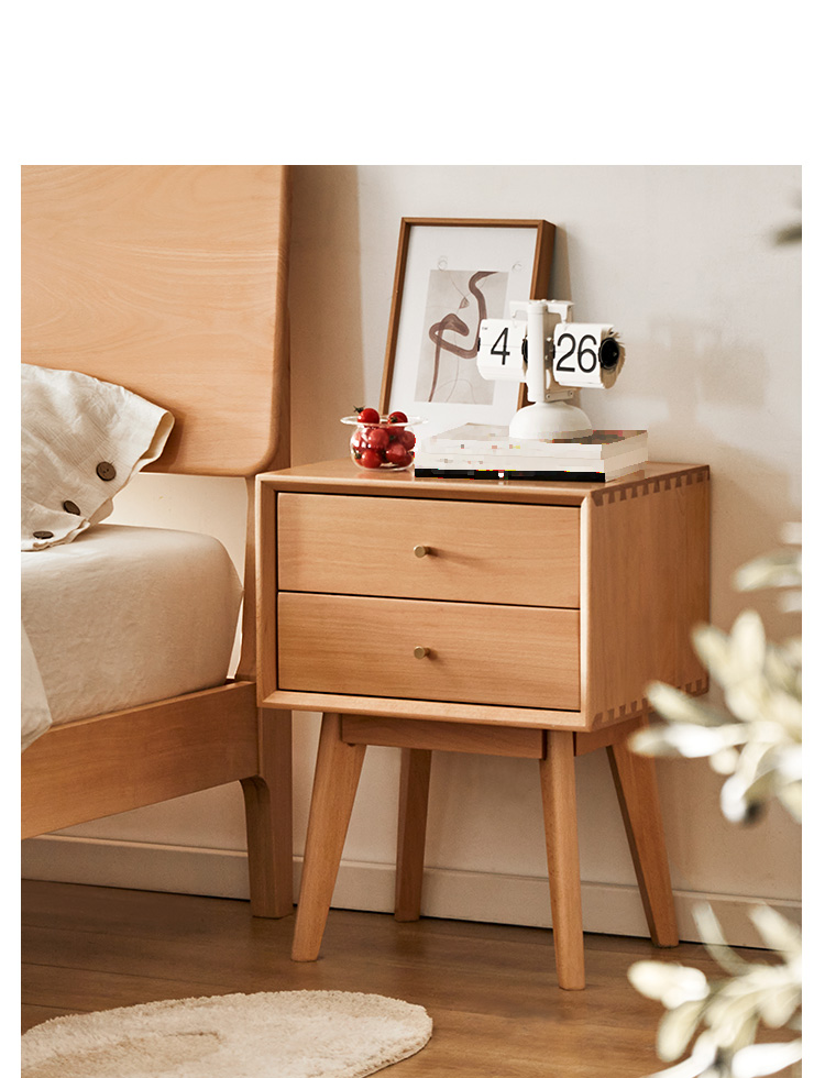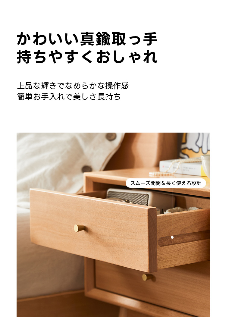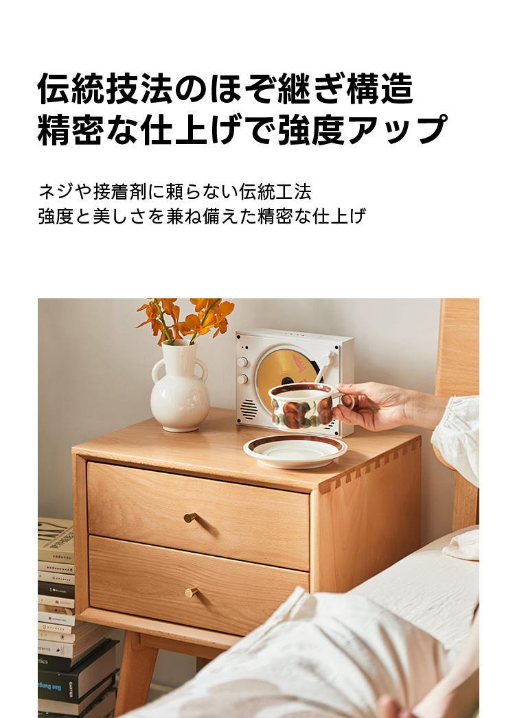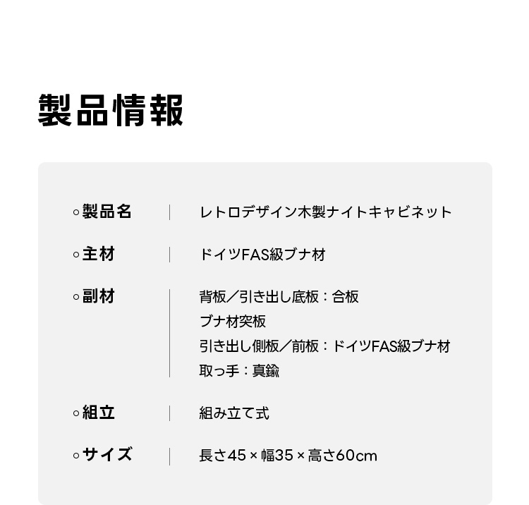 - 【高品質な素材とデザイン】ドイツ産FAS級ブナ材を使用した高品質なナイトキャビネットです。ナチュラルなブラウンカラーがどんなインテリアにも自然に溶け込み、レトロなデザインが寝室をおしゃれに演出します。