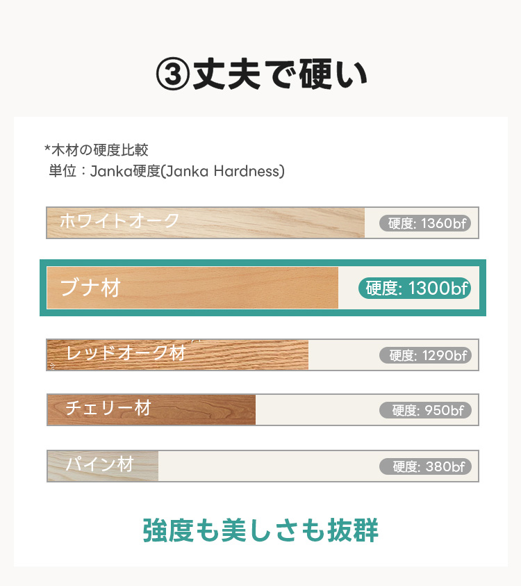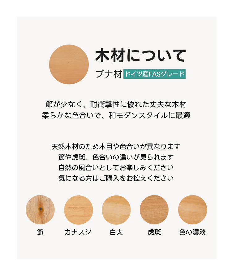 - 【耐久性と品質】ブナ材の特徴として、変色しにくく、均一な色味が長く保たれます。伝統的なほぞ継ぎ構造で、ネジや接着剤を使わずにしっかりとした作りを実現。長く安心してお使いいただけます。
